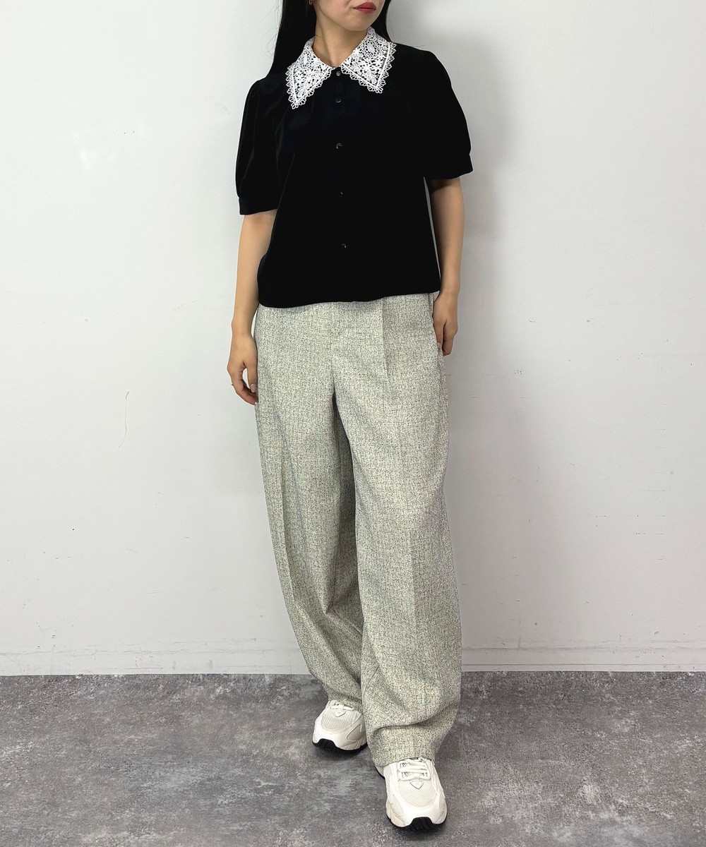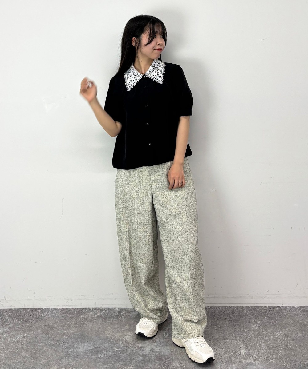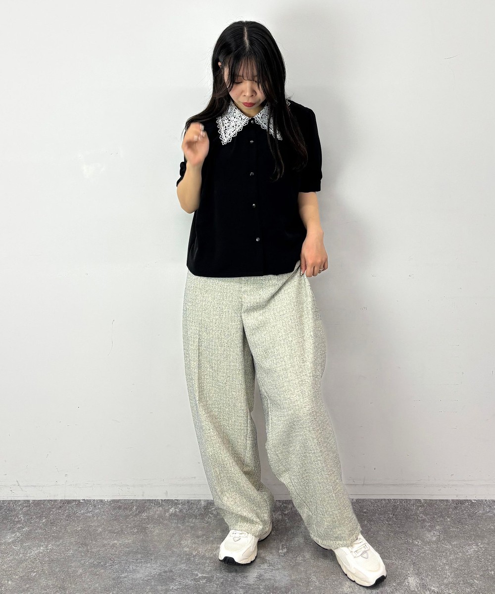 レース衿が引き立つようボディはシンプルに仕上げ、単品での着用はもちろんレイヤードスタイルもお楽しみいただけるアイテムです。