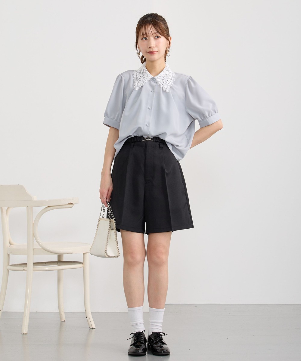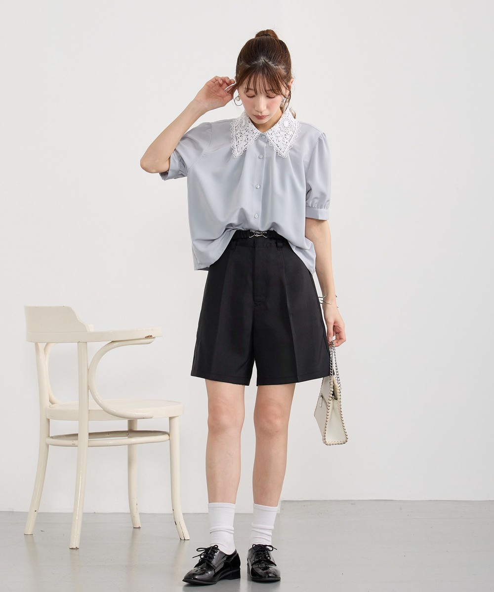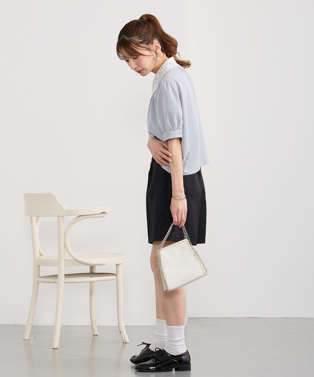 レース衿が引き立つようボディはシンプルに仕上げ、単品での着用はもちろんレイヤードスタイルもお楽しみいただけるアイテムです。