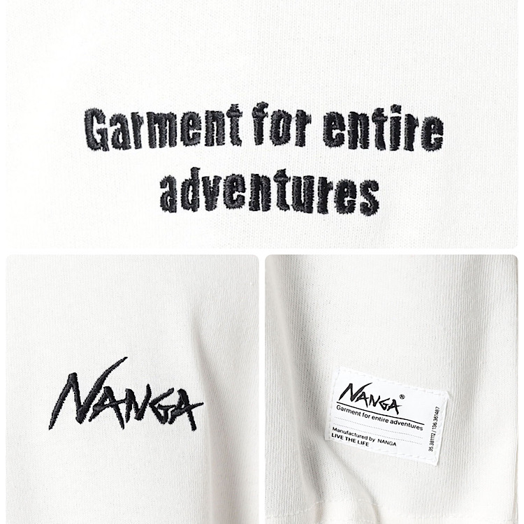 ★★★★★★★★★★★★★★フロント部分の別注ポイント★★★★★★★★★★★★★★★ 右胸刺繍Garment for entire adventuresを配置。 そして左胸刺繍NANGAロゴを配置。左右にロゴ刺繍が入る★★★スペシャル仕様★★★また裾口にはネームタグを配置。他にないGrand PARK 仕様のデザインです。