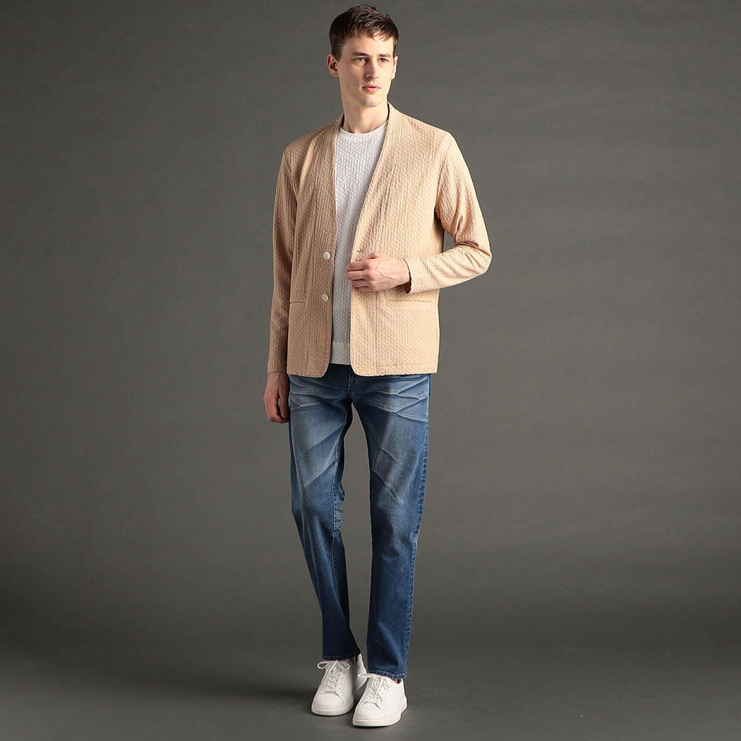 グラフィックジャカード ノーカラーニットジャケット ¥38,500 BUY