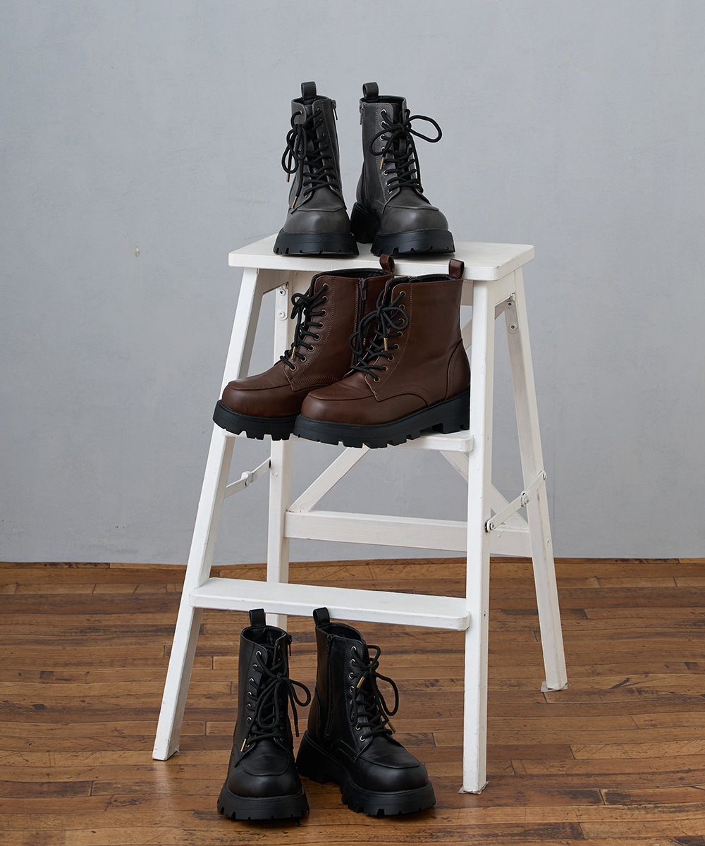 シンプルなアッパーデザインながらも凹凸感あるボリュームソールが存在感を出してくれます。