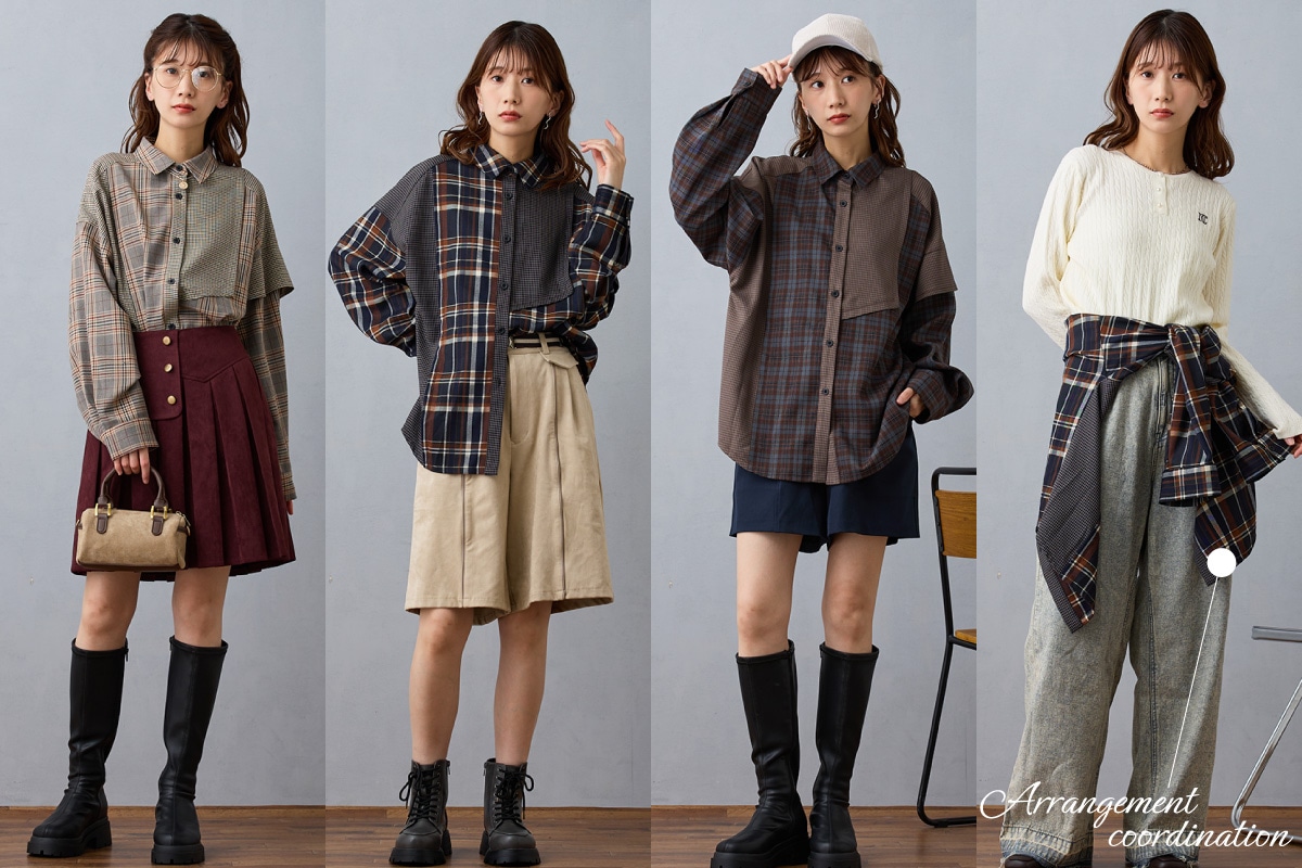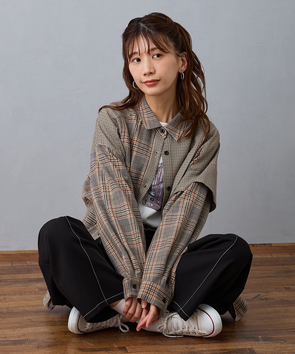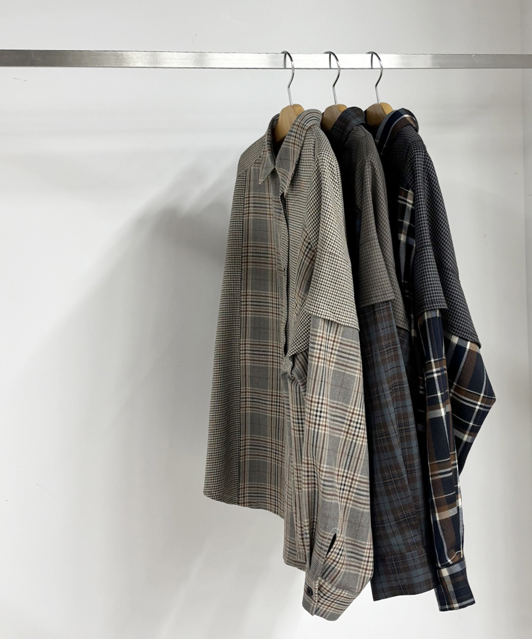 アシンメトリーな切り替えと2種類のチェックの組み合わせが一癖あるオーバーシャツが登場。
