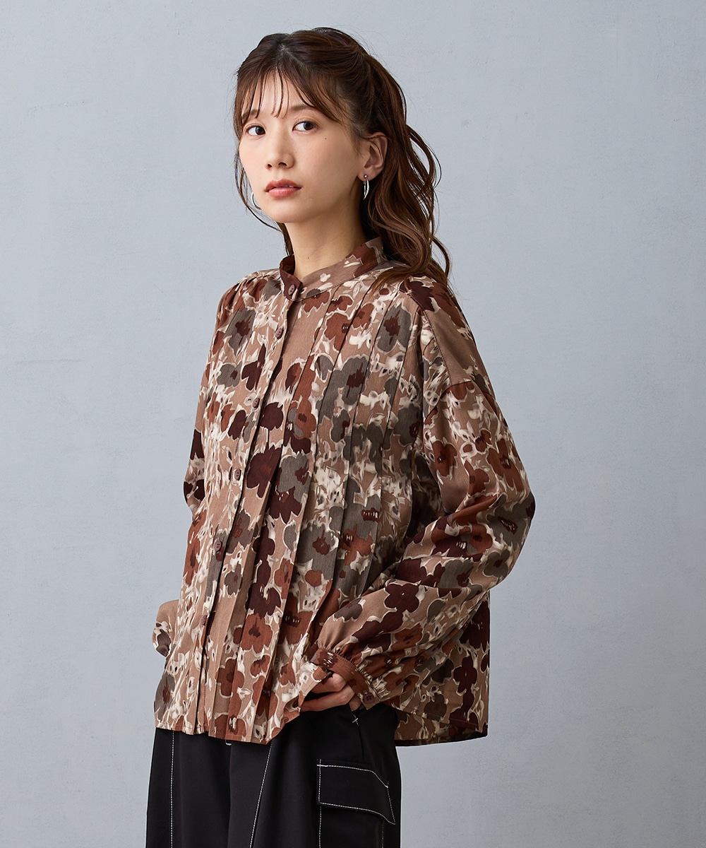 NICOLE CLUBらしいアシンメトリーなプリーツデザインの柄ブラウスが登場!