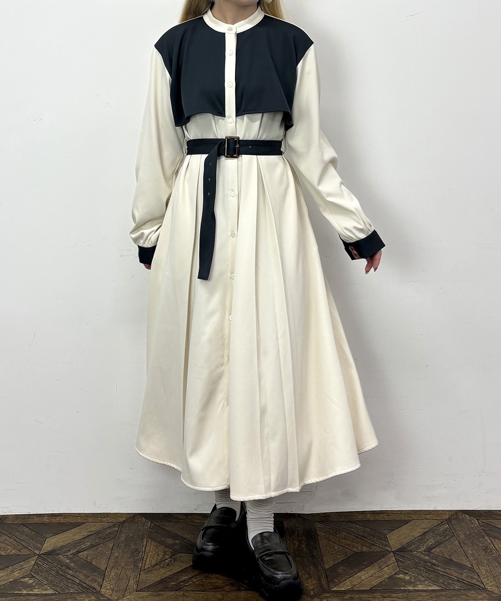 バイカラーケープ風ワンピース ¥11,000 BUY