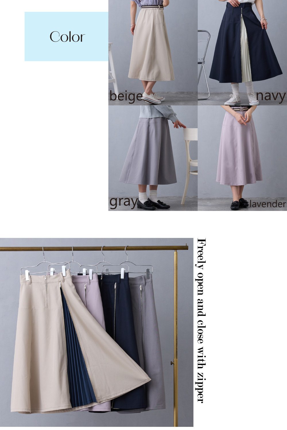 ファスナーの明け具合でお好みのシルエットにできるのも嬉しいポイント!