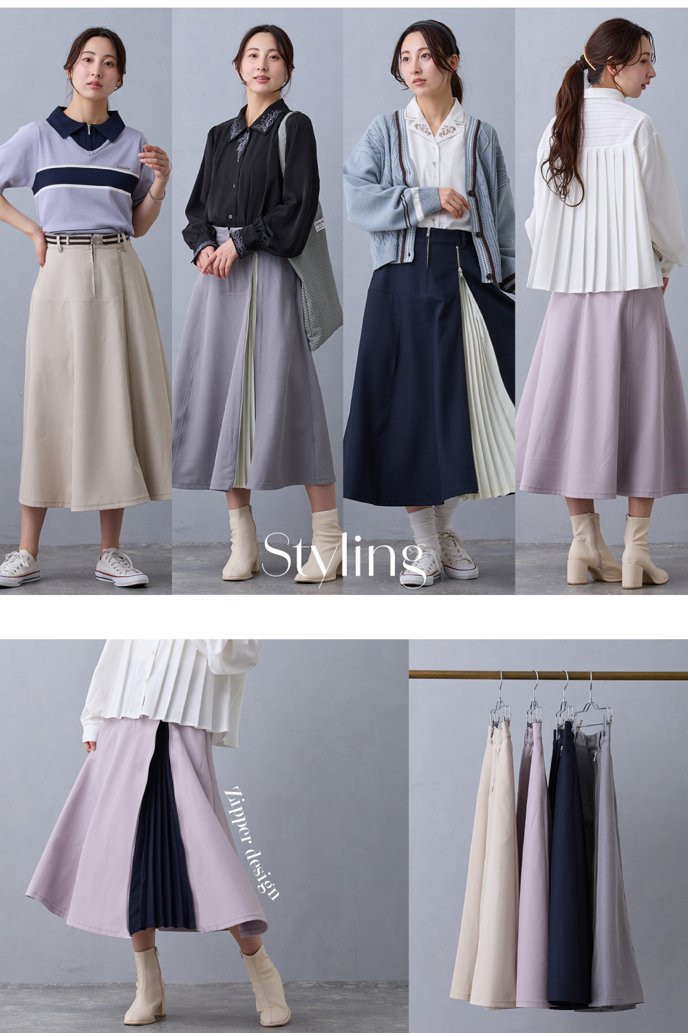 人気デザインのプリーツマチ付きのスカートが登場。