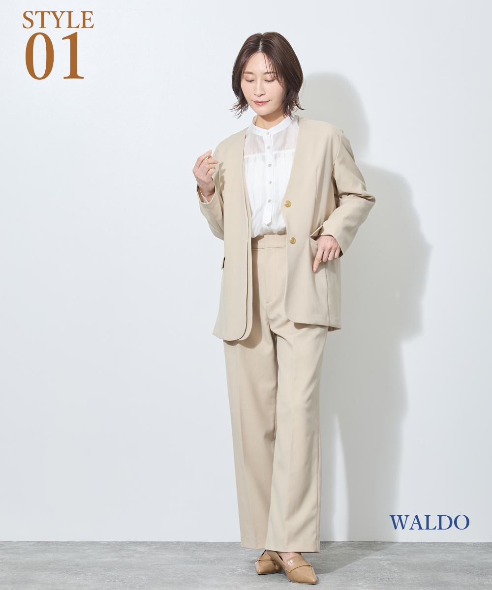 セットアップとしての完成度はもちろん、ダブルジャケットならではの単品使いでの存在感。手持ちのアイテムと組み合わせるだけで、春のコーディネートが軽やかに整います。