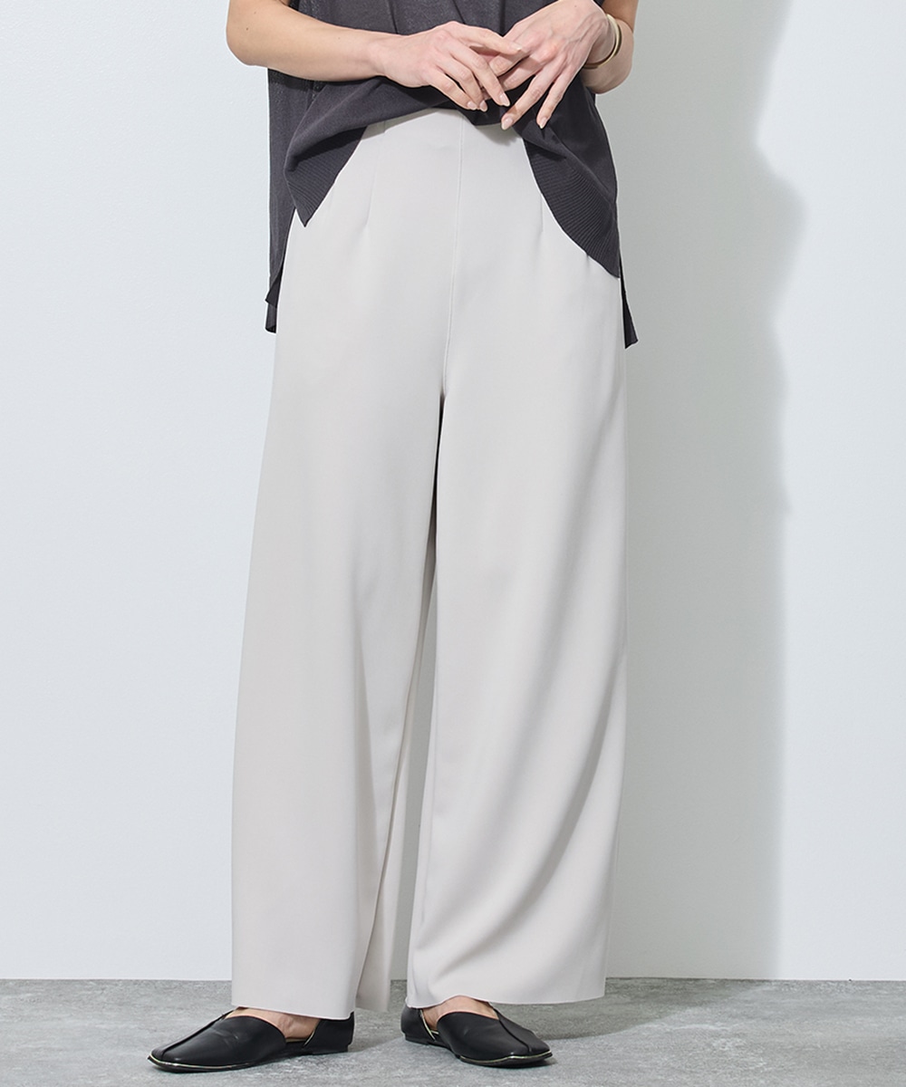 ポリエステルレーヨンのしなやかな生地が、動くたびに美しく揺れ、ニュアンスのある佇まいに。晴れの日の緊張感を解きほぐしてくれるような、優しい肌ざわりも魅力です。