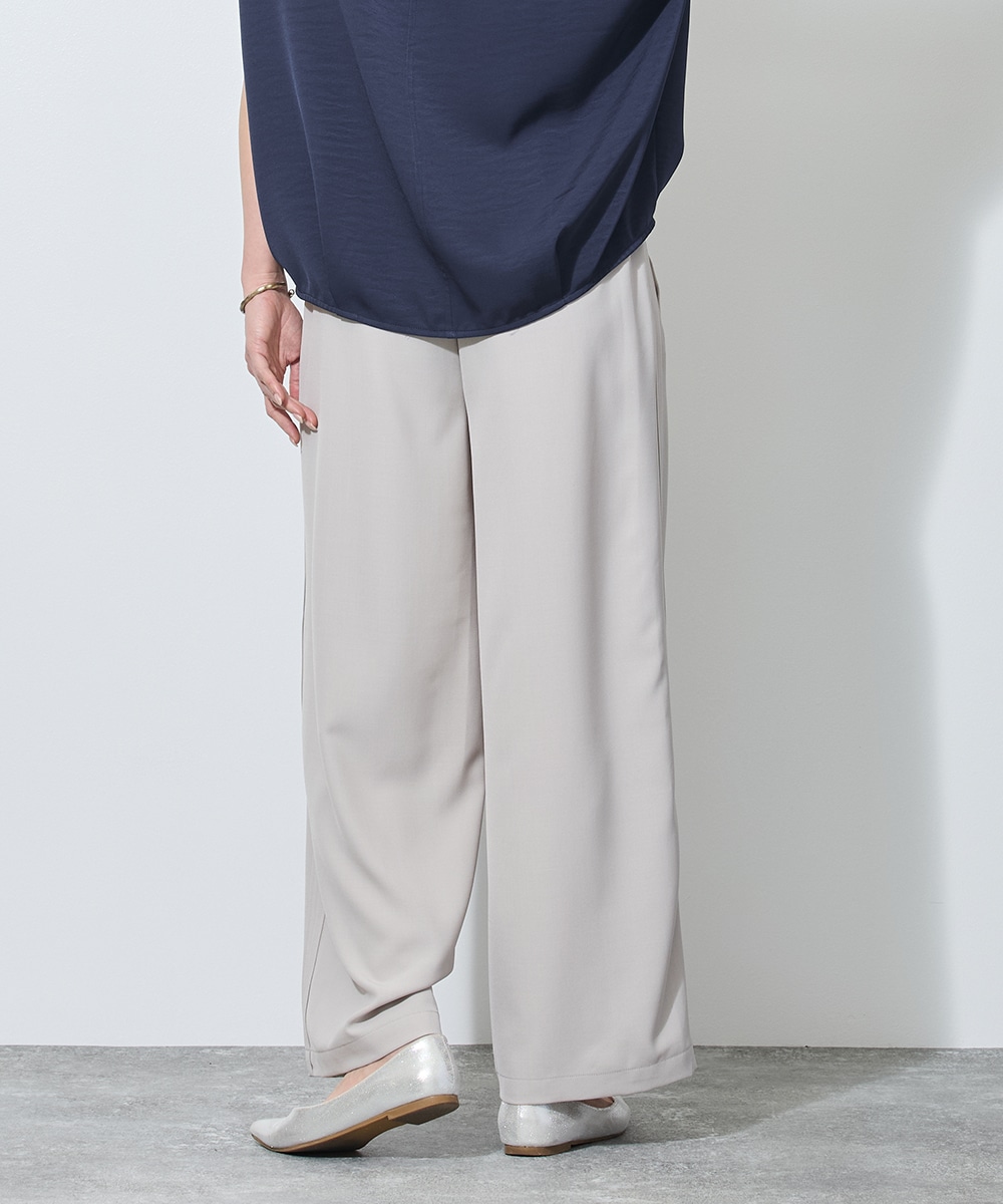 「ただ楽なだけ」のパンツを卒業した大人の女性に捧げる、究極のイージーパンツです。最大の特徴は、サイドに施された独自の「折り返しタック」。