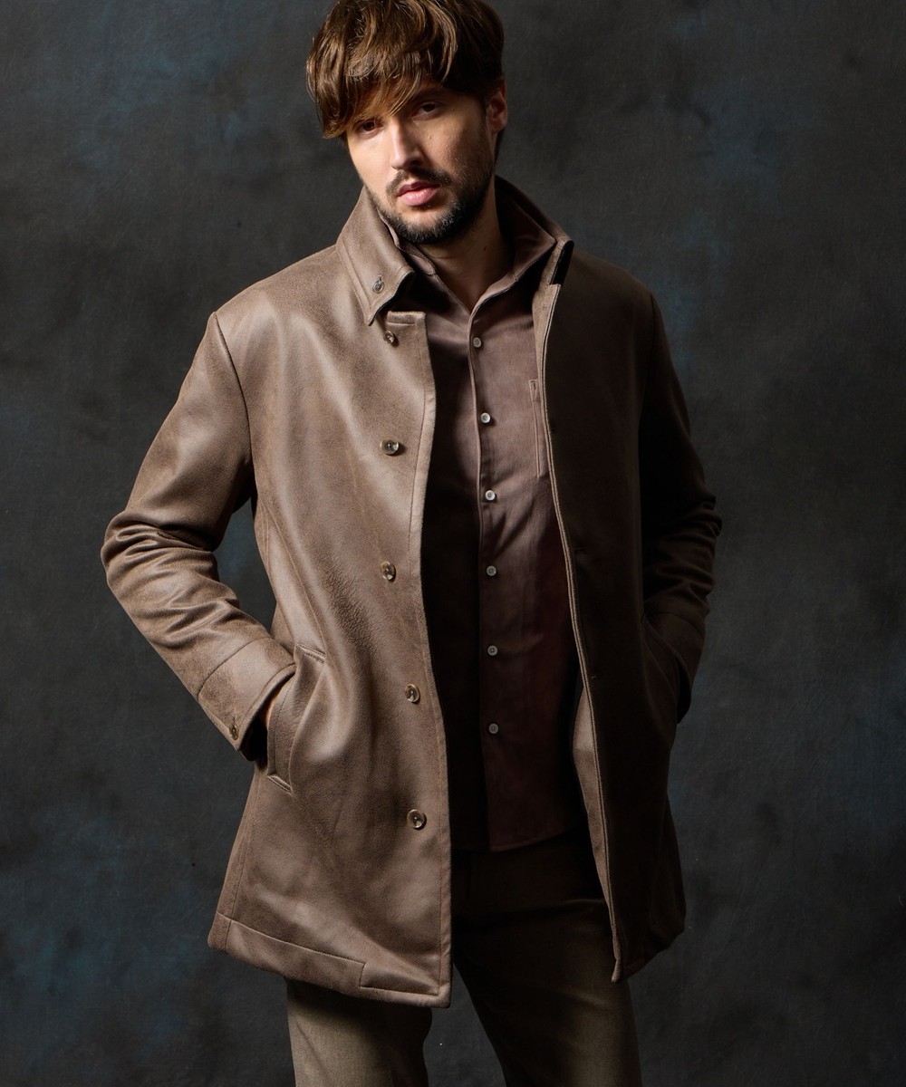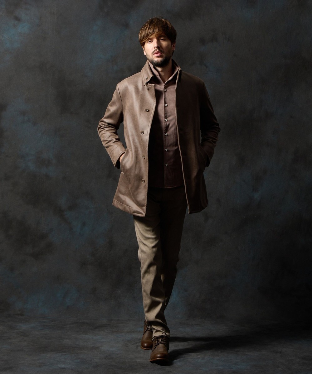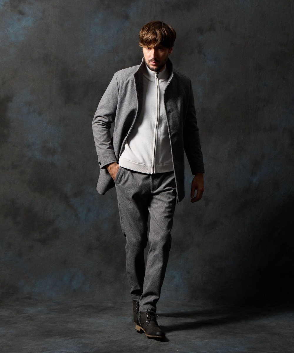 ビジネスシーンを含めオンオフ問わずに着回しやすいモノトーンカラーの全3色展開。長期間ご着用いただけるよう総裏仕様にしました。衿端にはワイヤーを入れておりスタンドでも折り返してもVゾーンを綺麗に見せてくれます。シンプルがゆえにパンツやインナーの着合わせを問わない万能コートです。