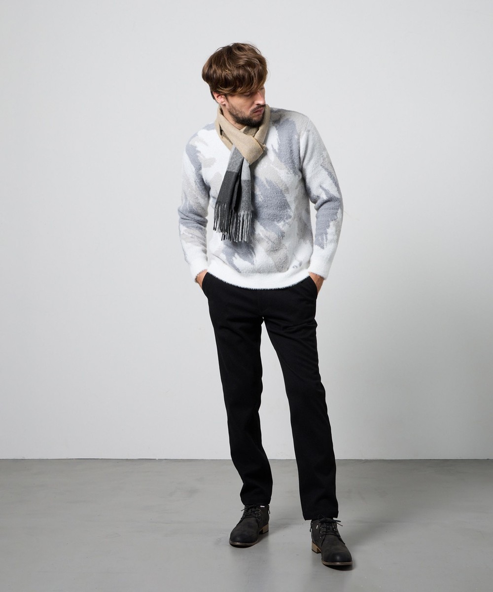 微配色のグラデーションでシックな雰囲気を表現したハケメ柄とメリハリの利いた配色使いのライン柄をそれぞれ白黒2色で展開。一枚でもインナーとしても重宝するデザイン、手頃なプライスで多色買いもオススメです。