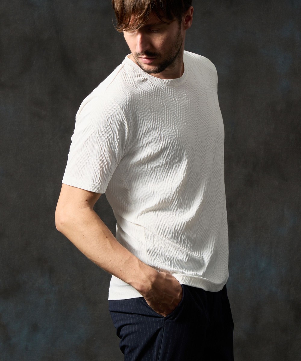 モノトーンカラーでコーディネートの幅が広がる全2色展開。素材の柄感を活かしたシンプルなデザインでカジュアル、キレイめ問わずお合わせいただけます。