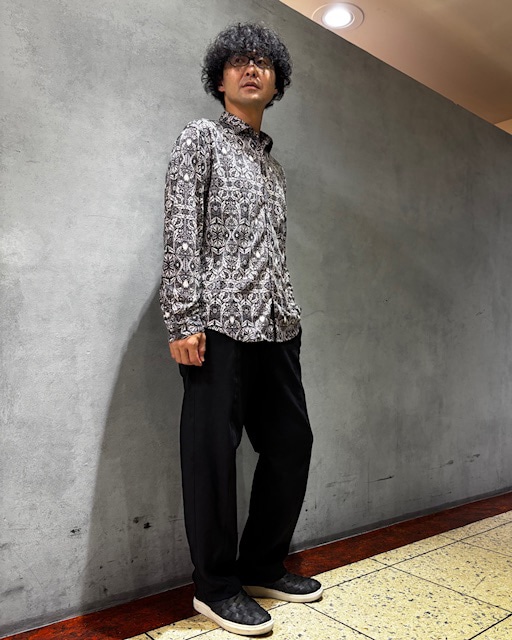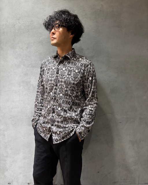 オリエンタル調のプリントが全体に入りムードのあるシャツ。