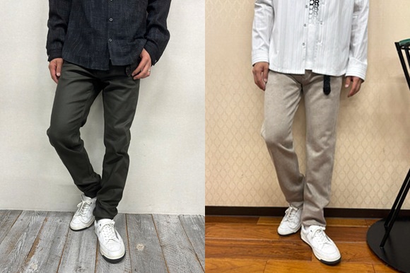 モノトーン以外のパンツなら、使い勝手の良いアースカラー。