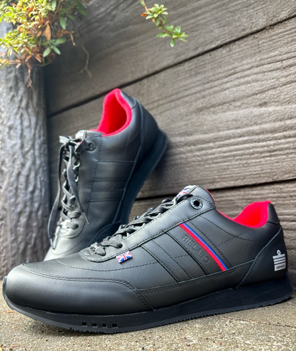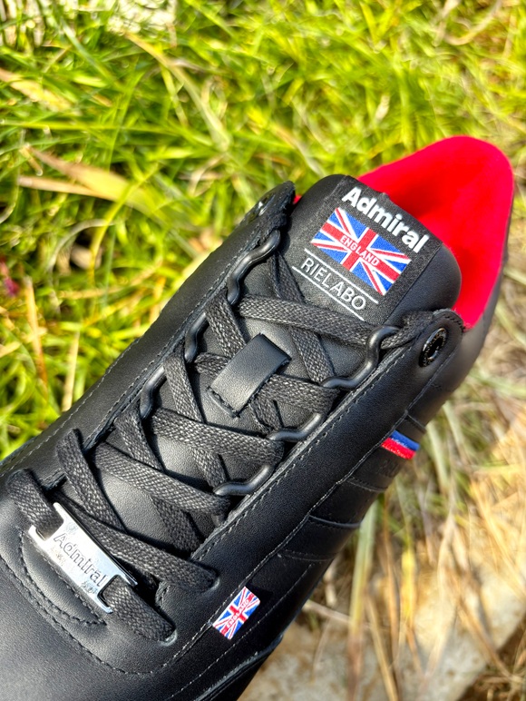 切り替えラインに配されたリエラボロゴ。 シンプルなスタイリングの中で程よいスパイスとして機能する。