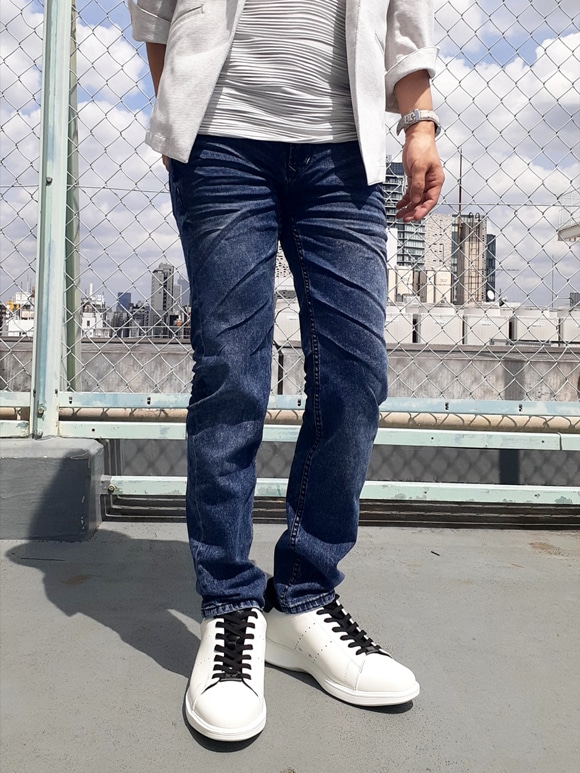 8分丈のスリムストレートデニムパンツ。