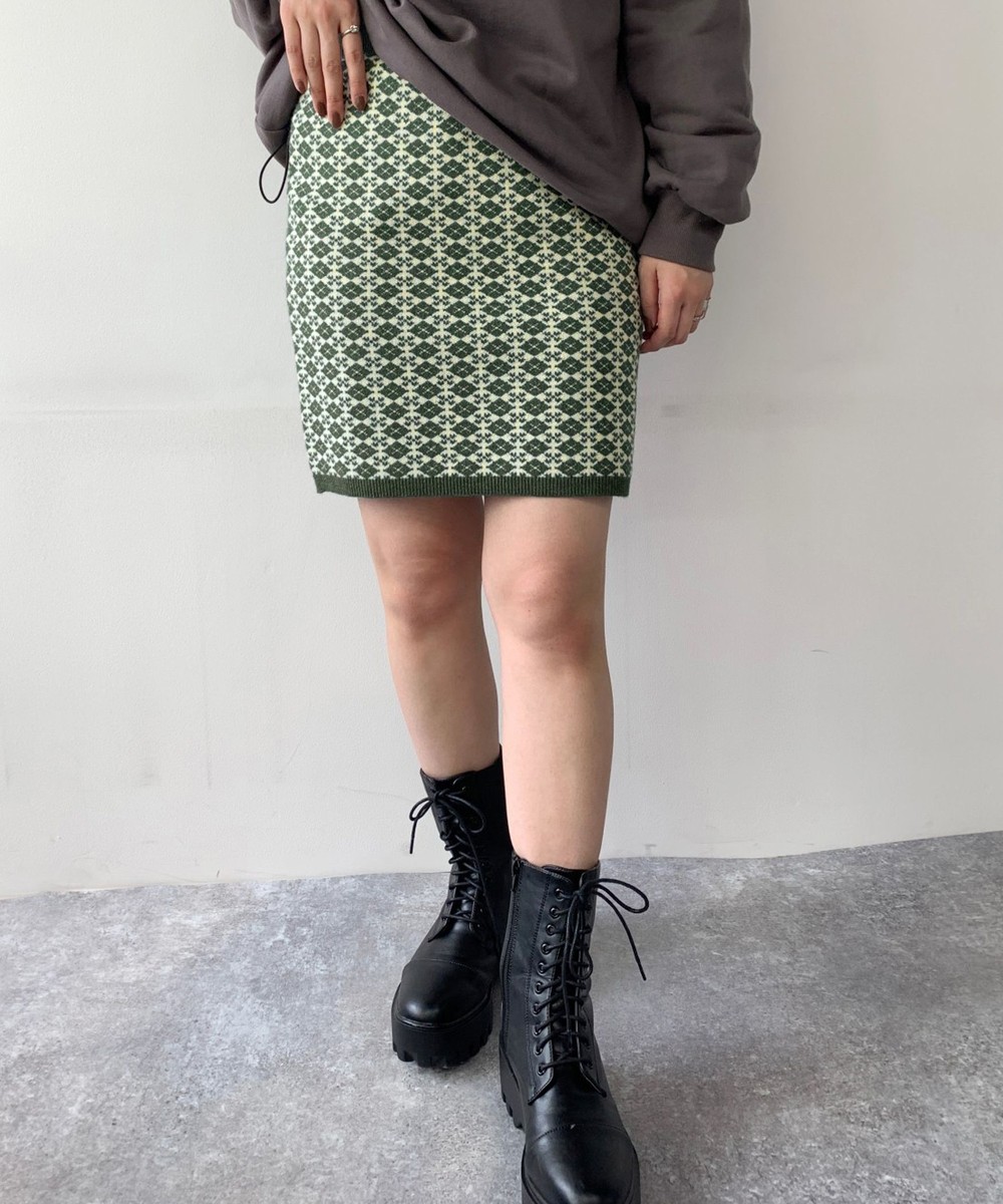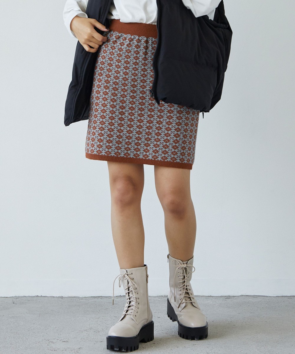 レトロな雰囲気漂う変形アーガイル柄のジャカードタイトスカート!