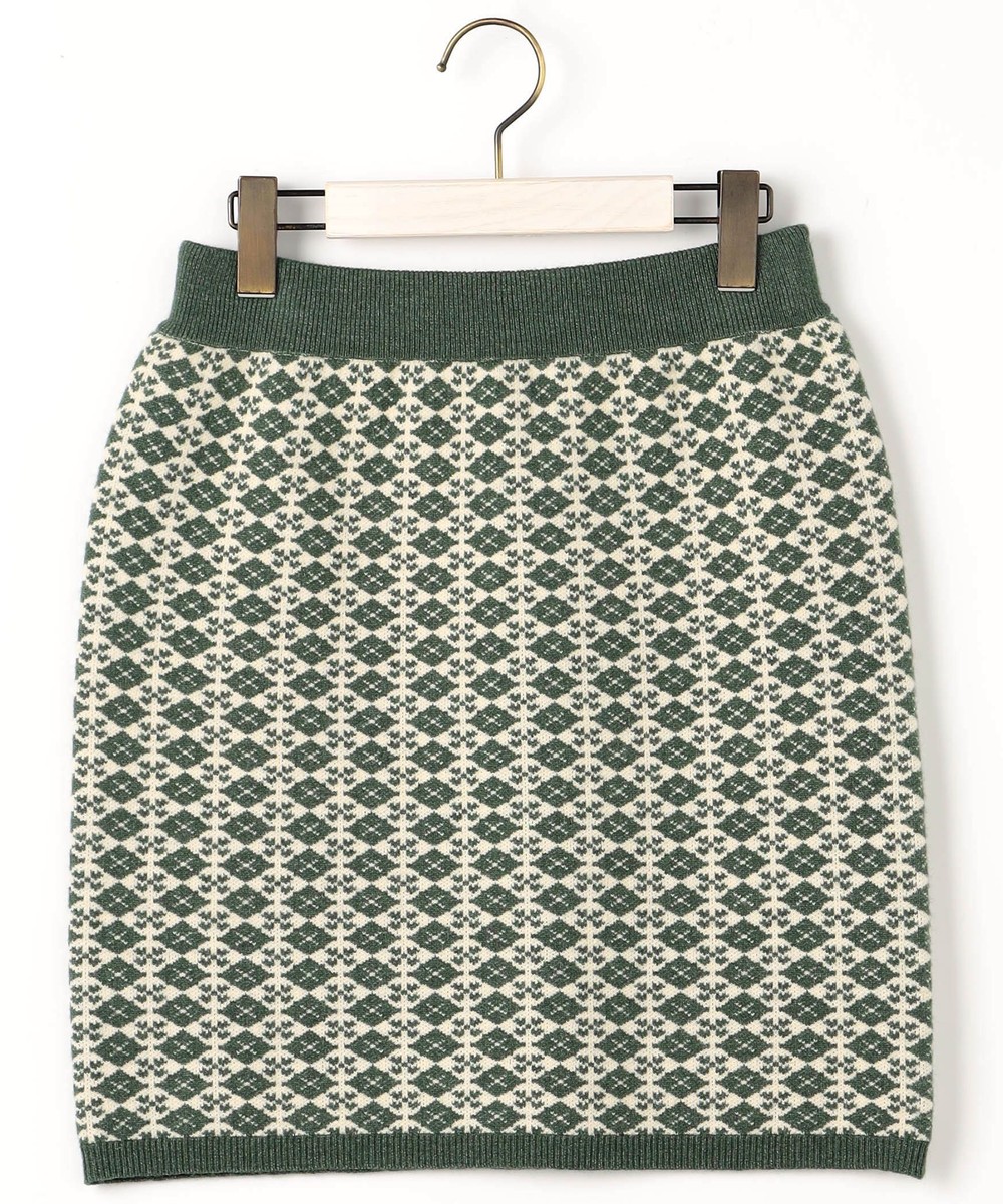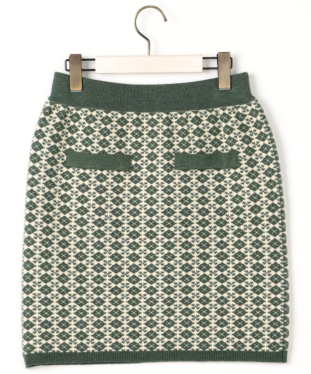 お手入れ/レトロな雰囲気漂う変形アーガイル柄のジャカードタイトスカート!