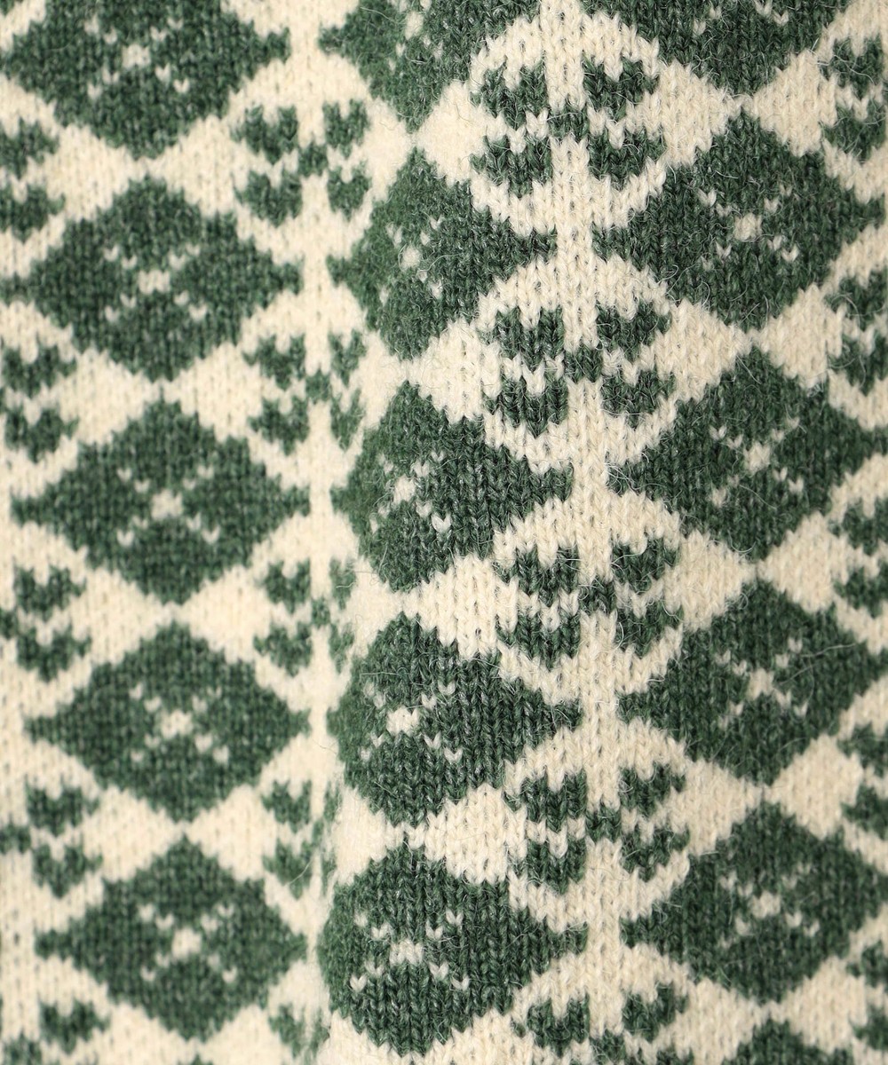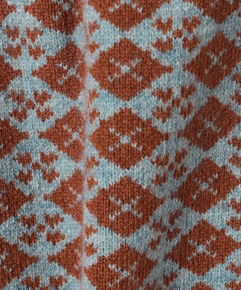 ダブルジャカード編みでこだわりの変形アーガイル柄を表現し、裾&ウエストが配色のデザインは、他にはない新鮮なデザインがポイント。