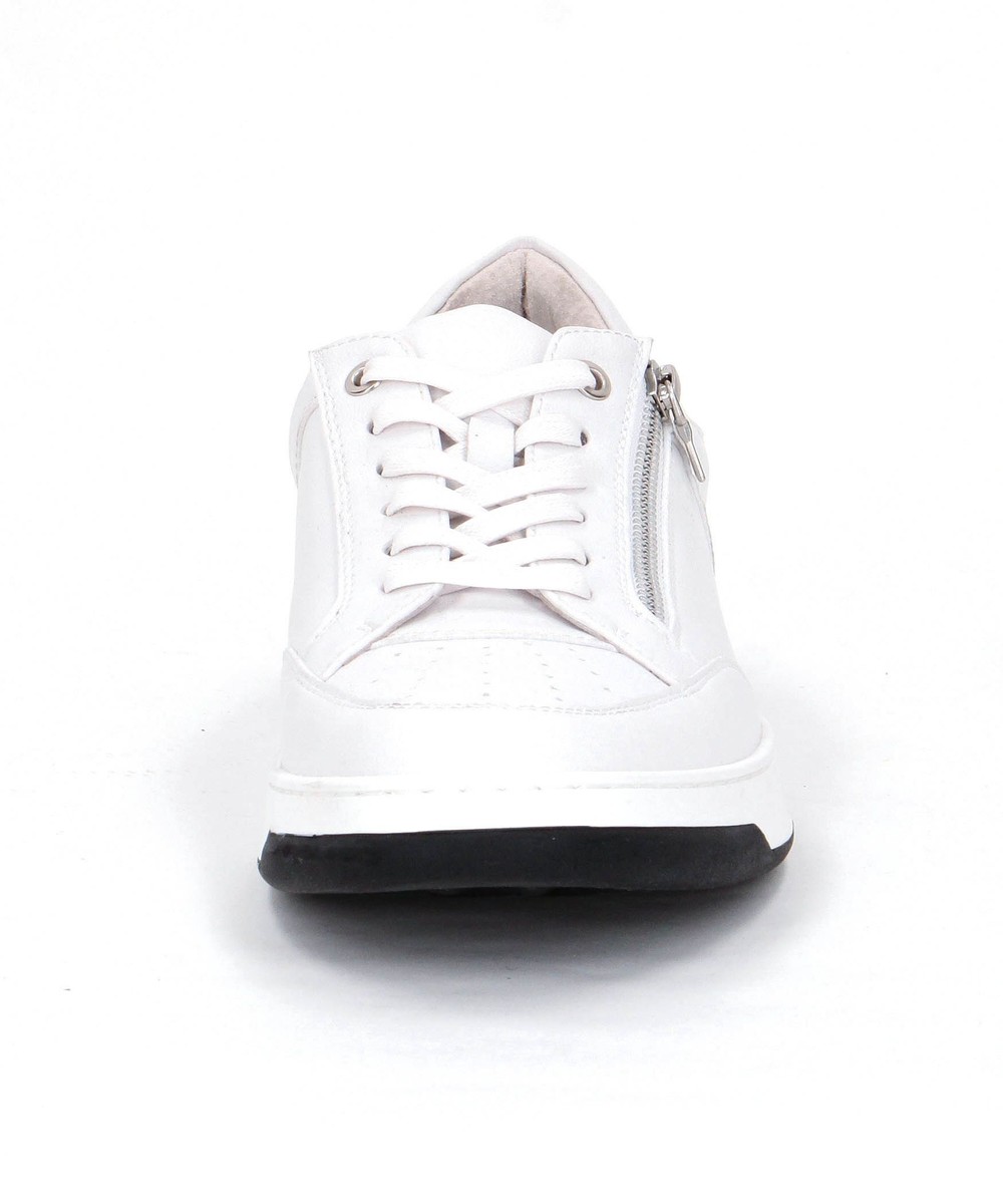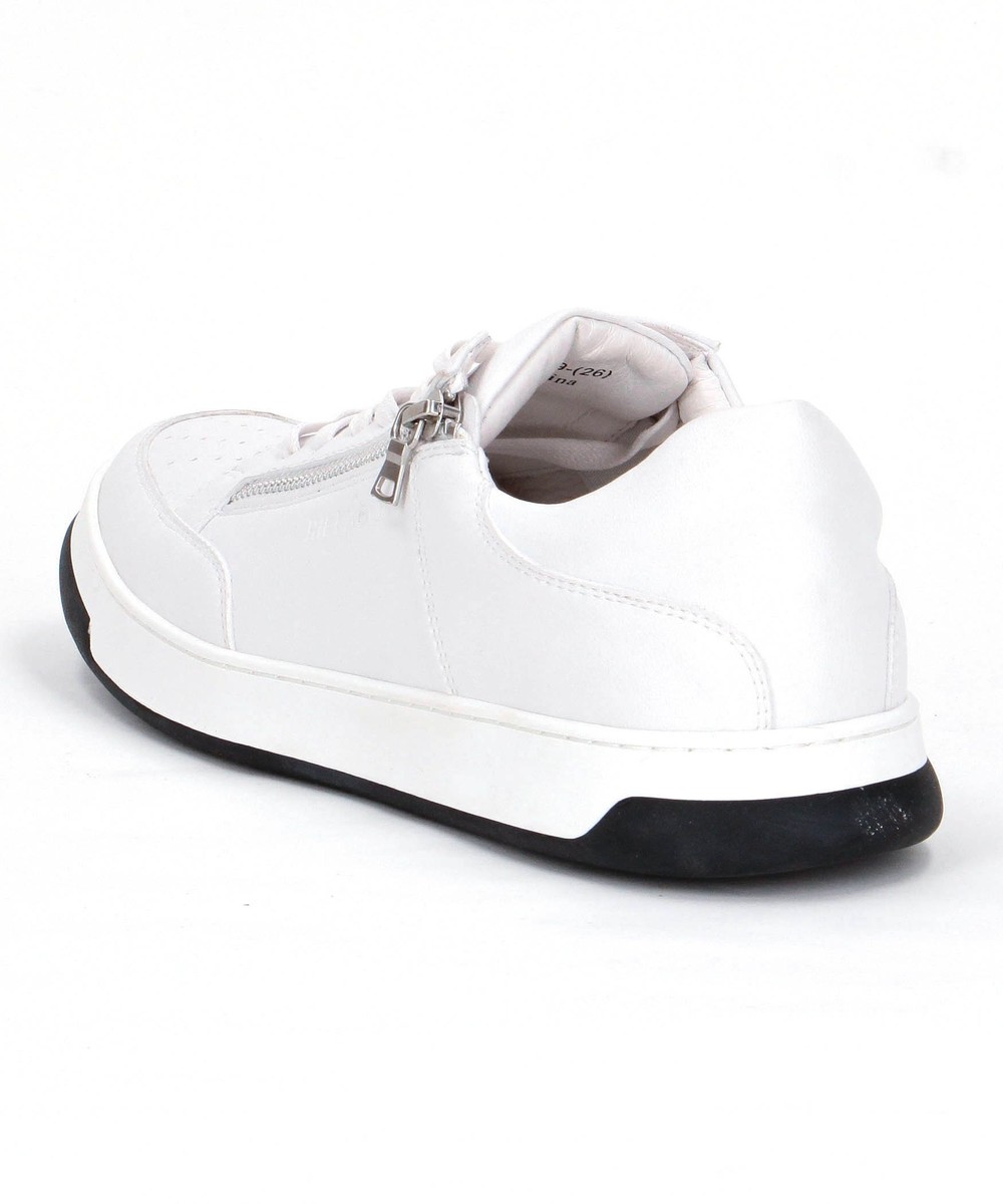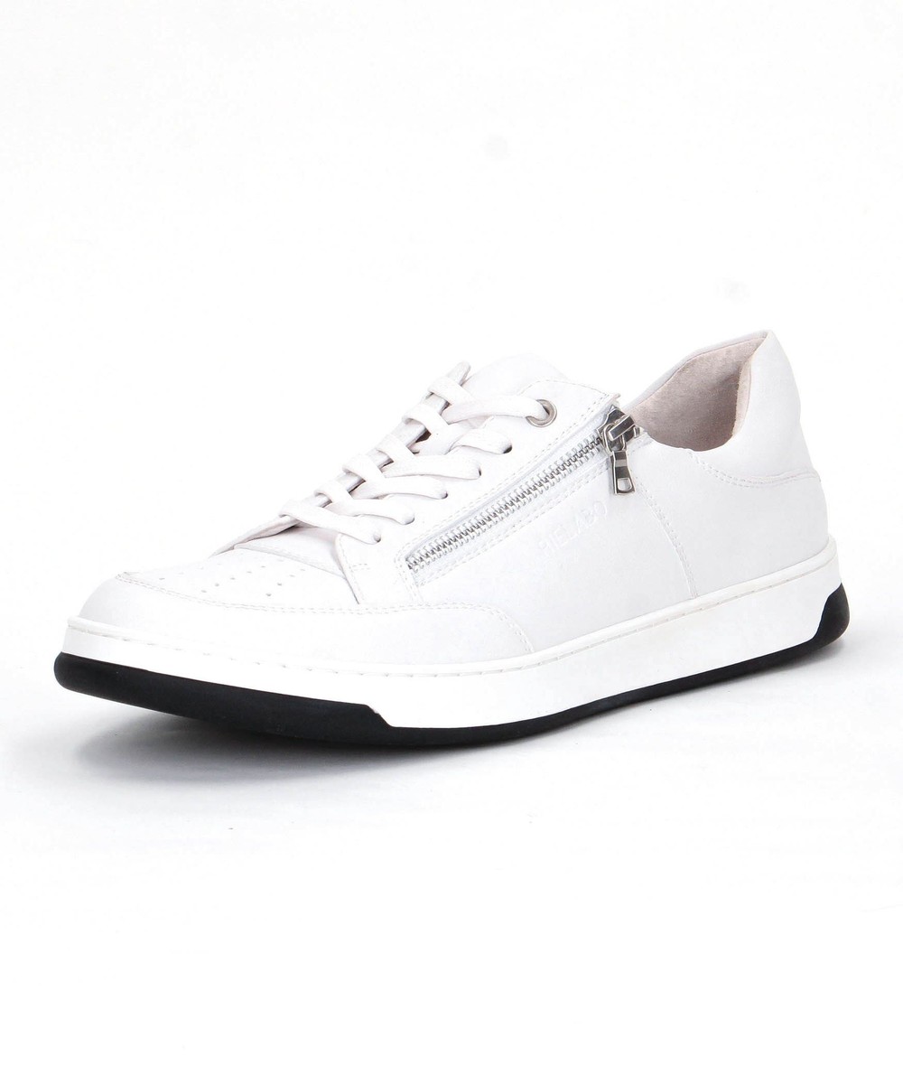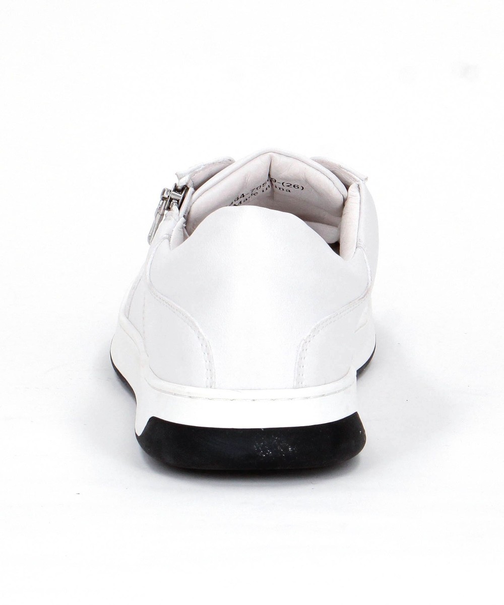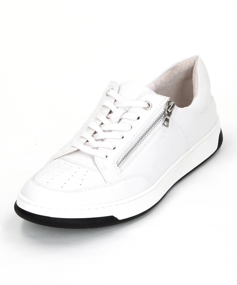 オリジナルデザインのコートスニーカー。少し細長く、トゥスプリングの利いた木型(ラスト)と、コートタイプのスッキリとした2トーンのモールドソールを採用し、トレンド性を高めた大人モードなシューズに仕上げています。サイドファスナー仕様で履きやすく、シュータンと履き口にはクッション材を入れて、インソールにカップソールを採用する事で包み込む様なフィット感を高めています。ロウ引きの細いシューレースや素押しのロゴ、パンチングラインなどさりげないデザインにもこだわっています。