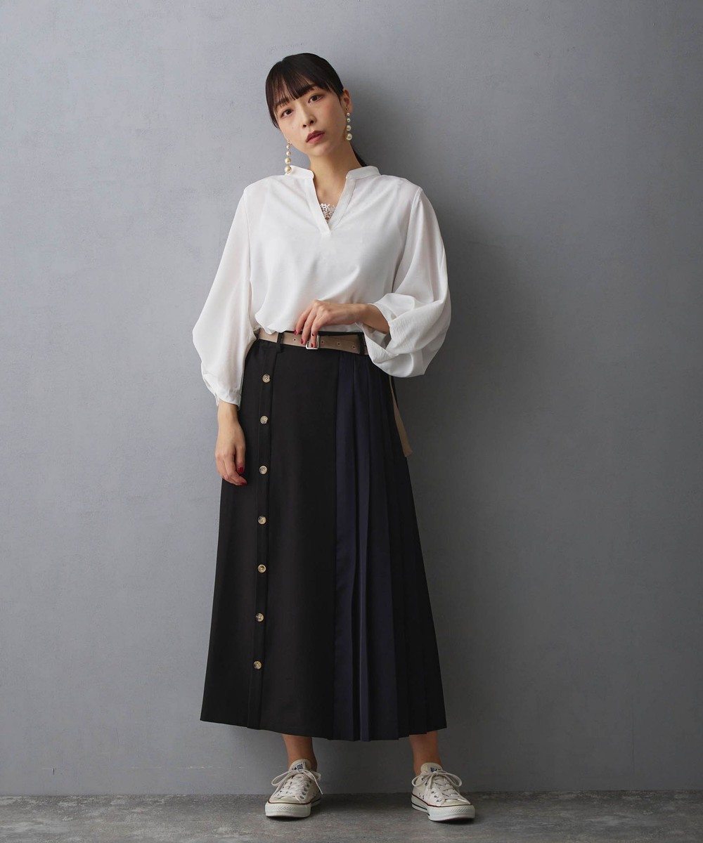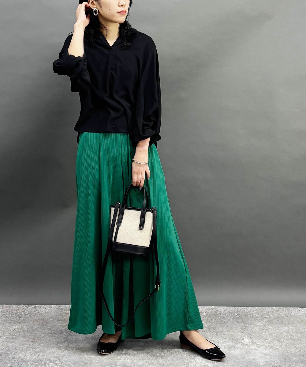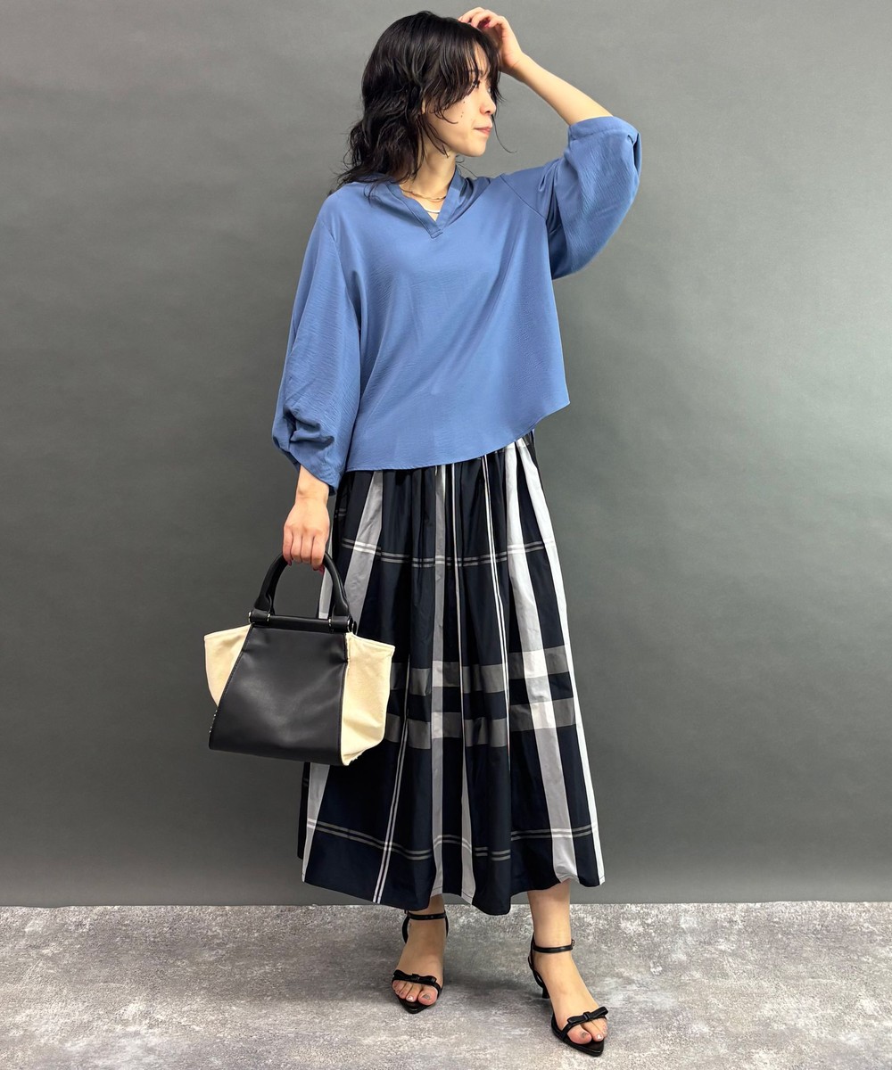 程よくシワ感のあるエアリーボイルを採用、ふわりと柔らかく、表情感のある素材はキレイメになりすぎずマルチに活躍します。