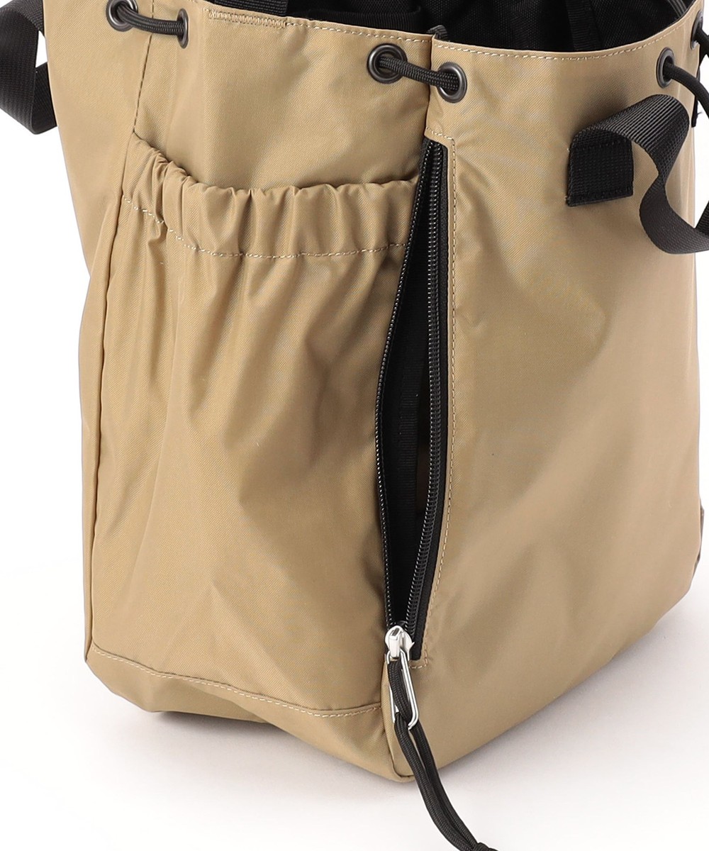 *トップ部分の巾着に加えて、サイドに付いているファスナーからも荷物へアクセス可能です。