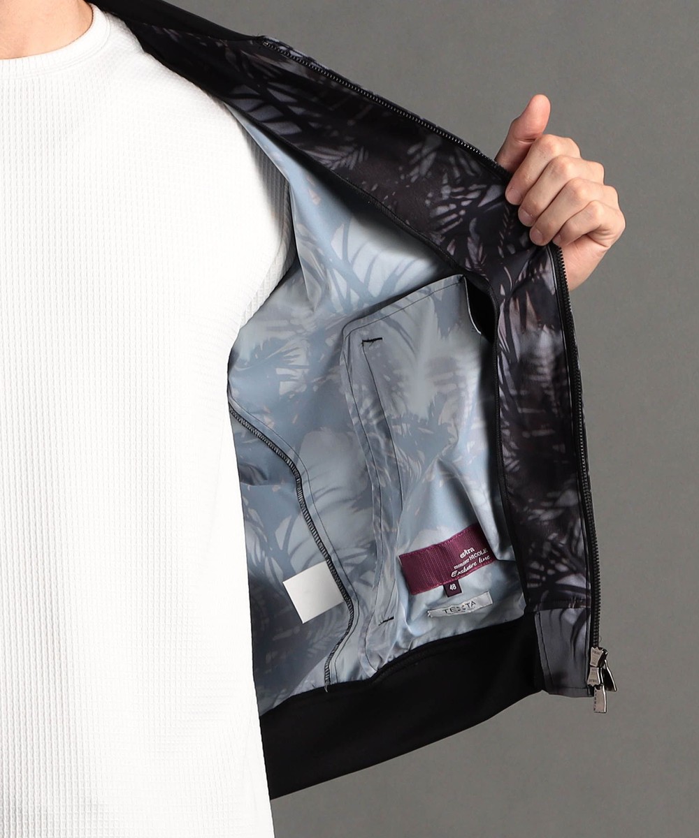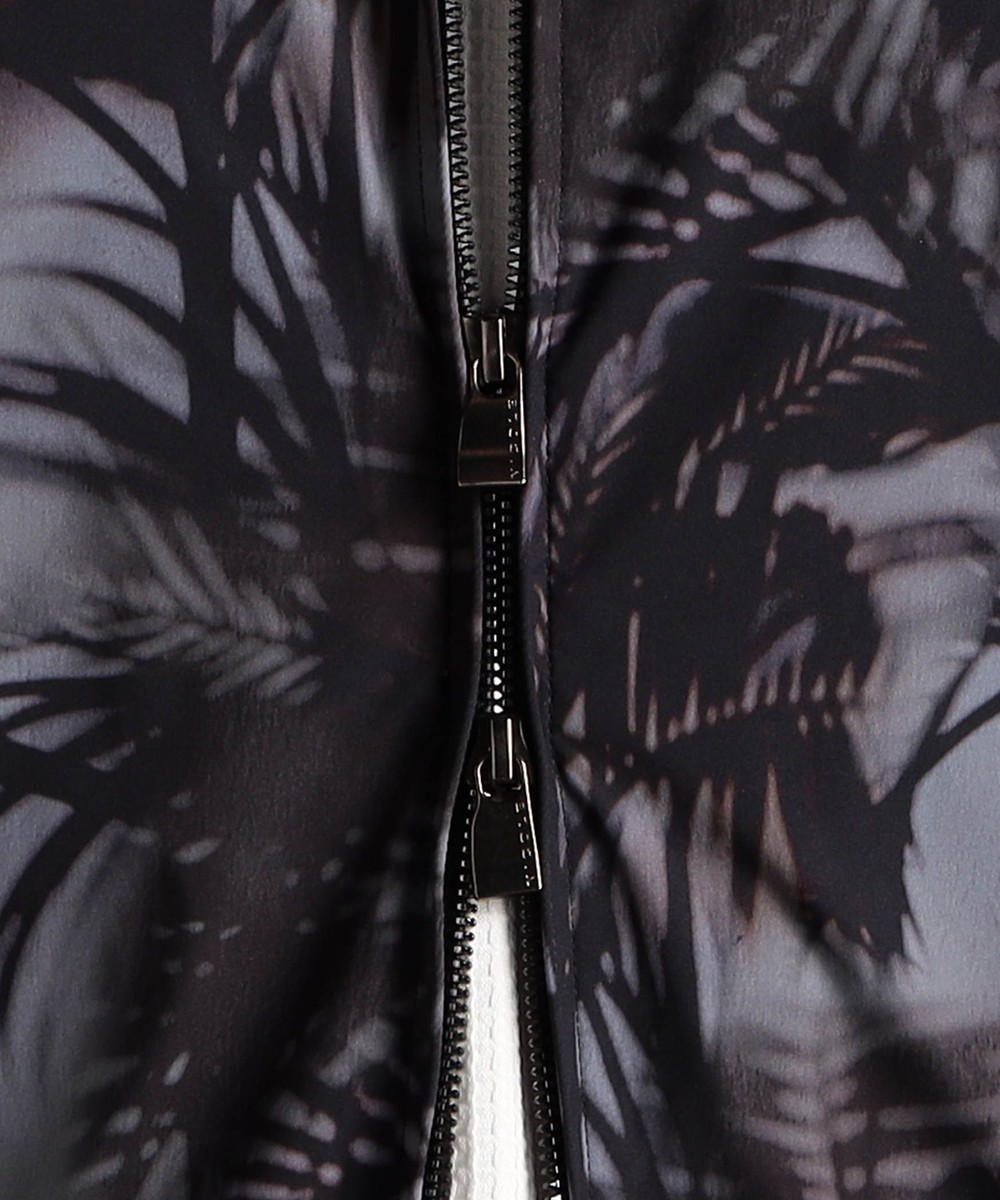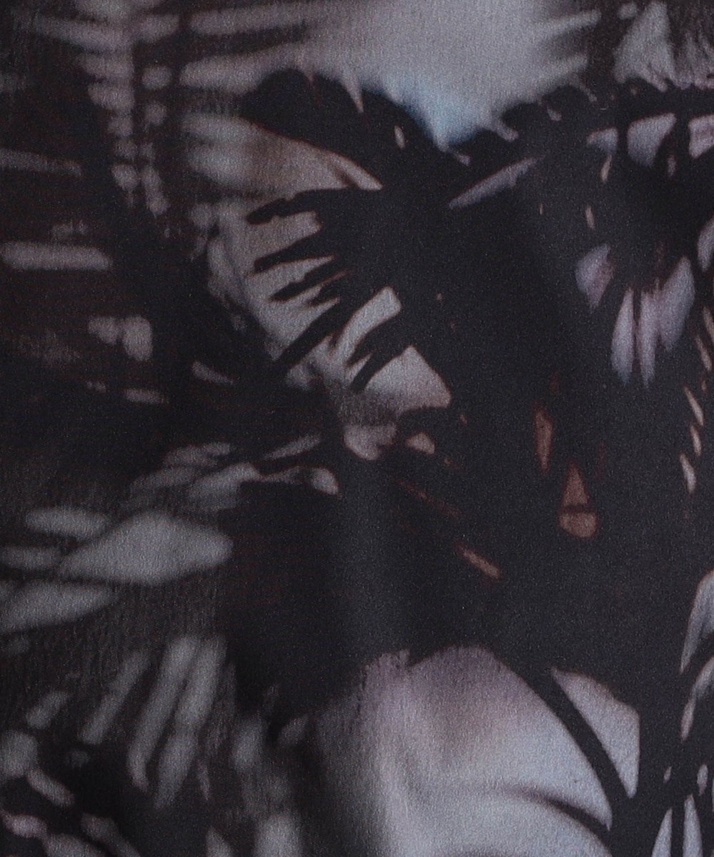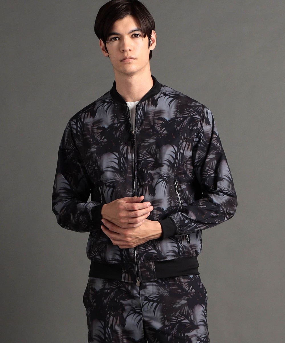ダークなボタニカルモチーフをシャドーライクにプリントしたストレッチタフタを厳選採用。