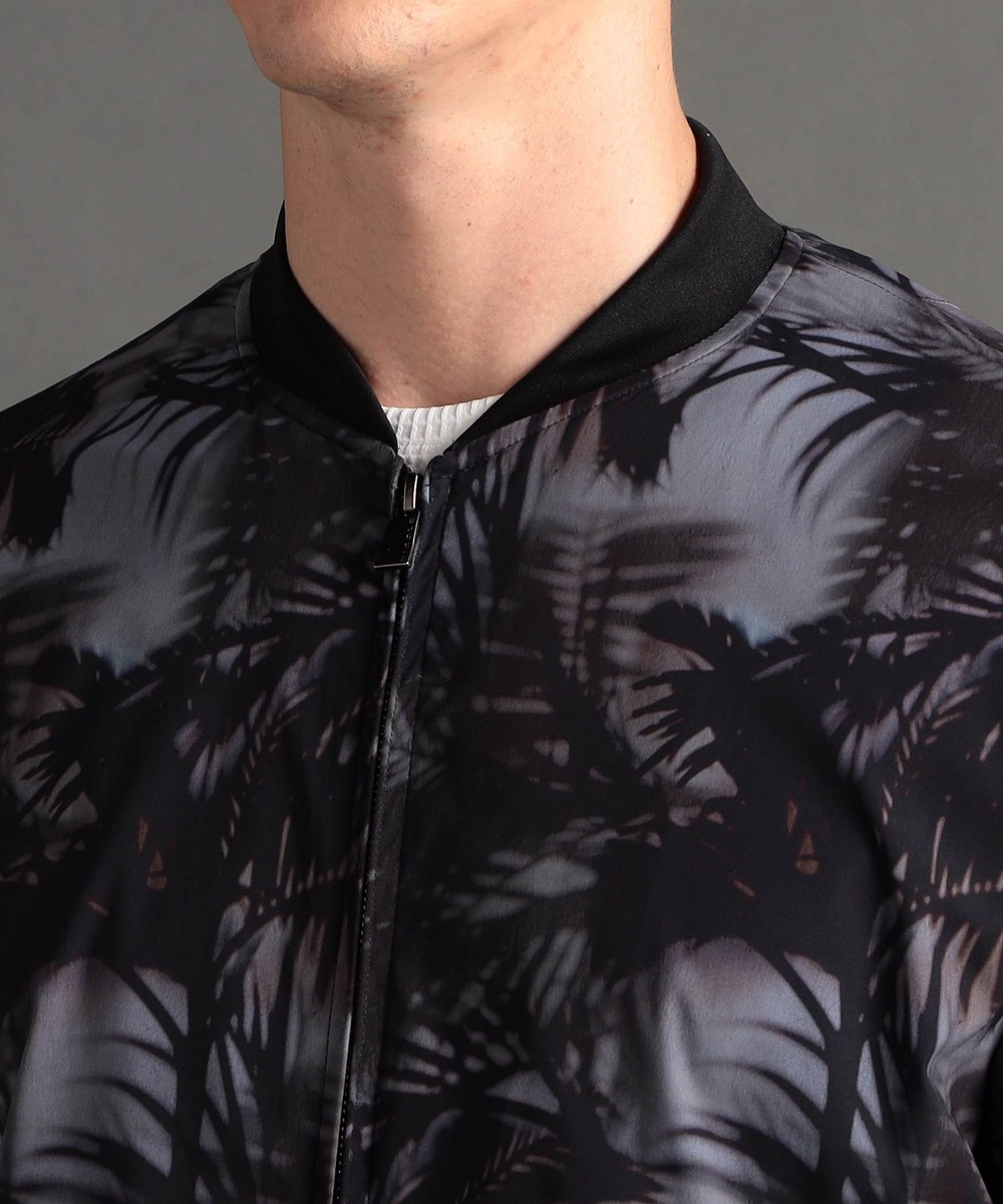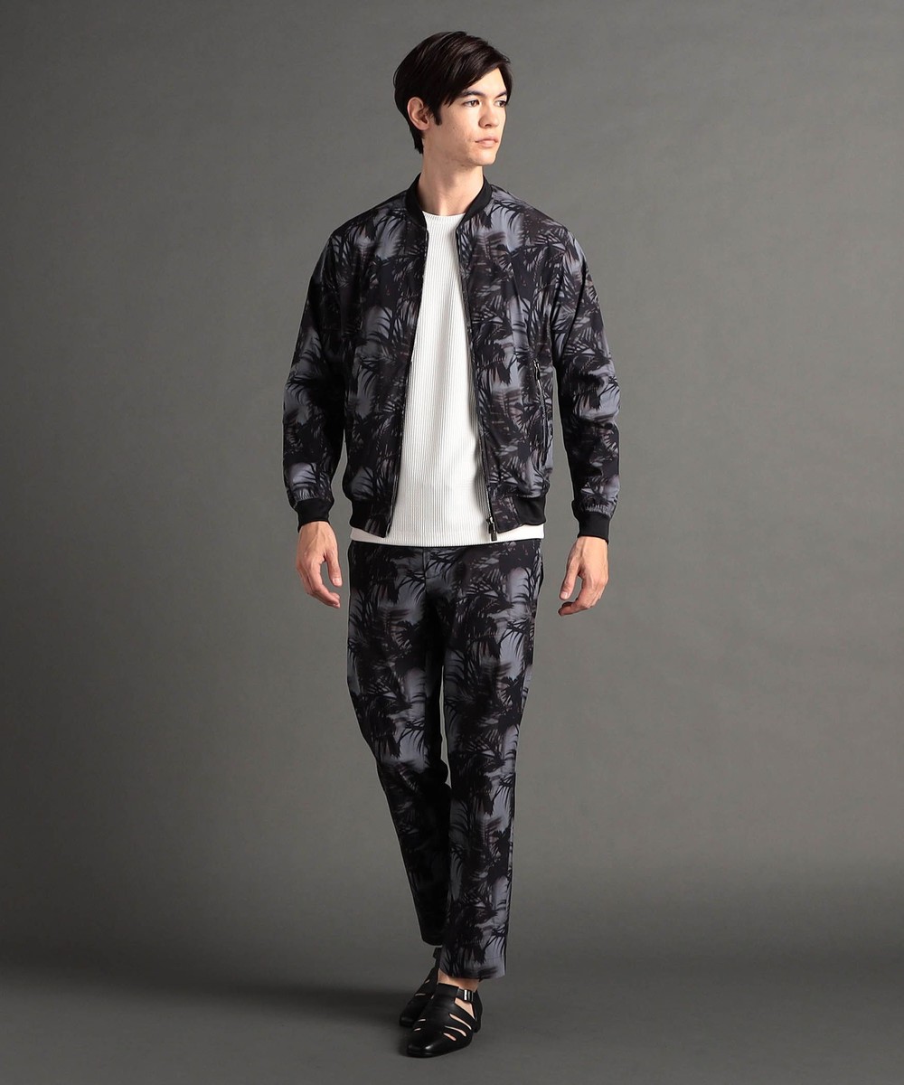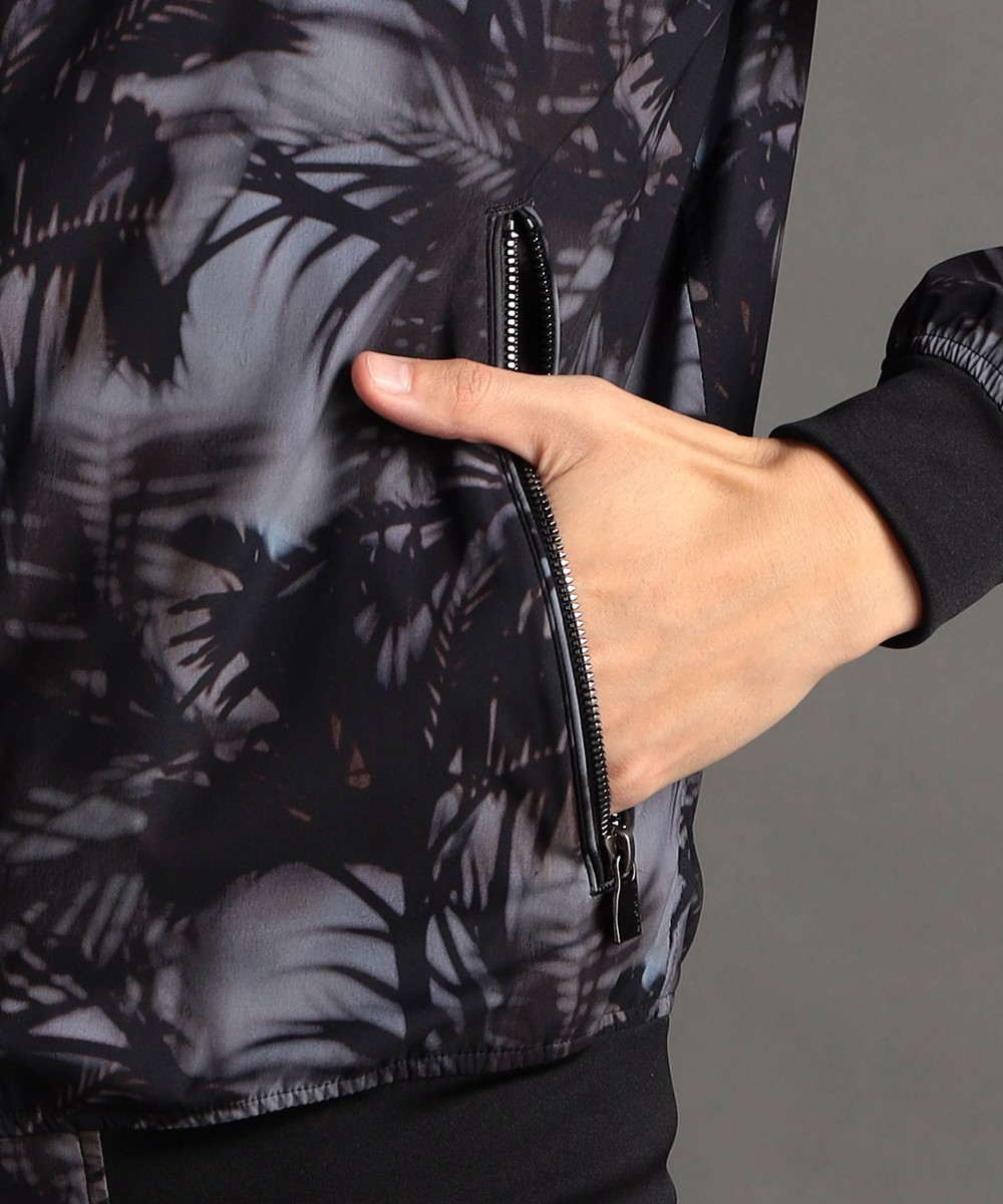 ダークなボタニカルモチーフをシャドーライクにプリントしたストレッチタフタを厳選採用。