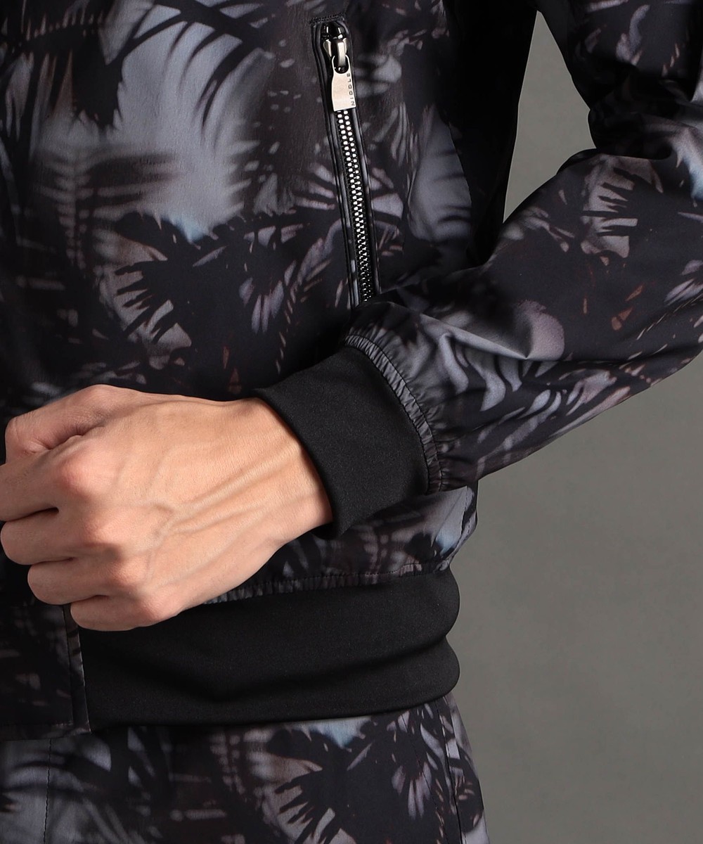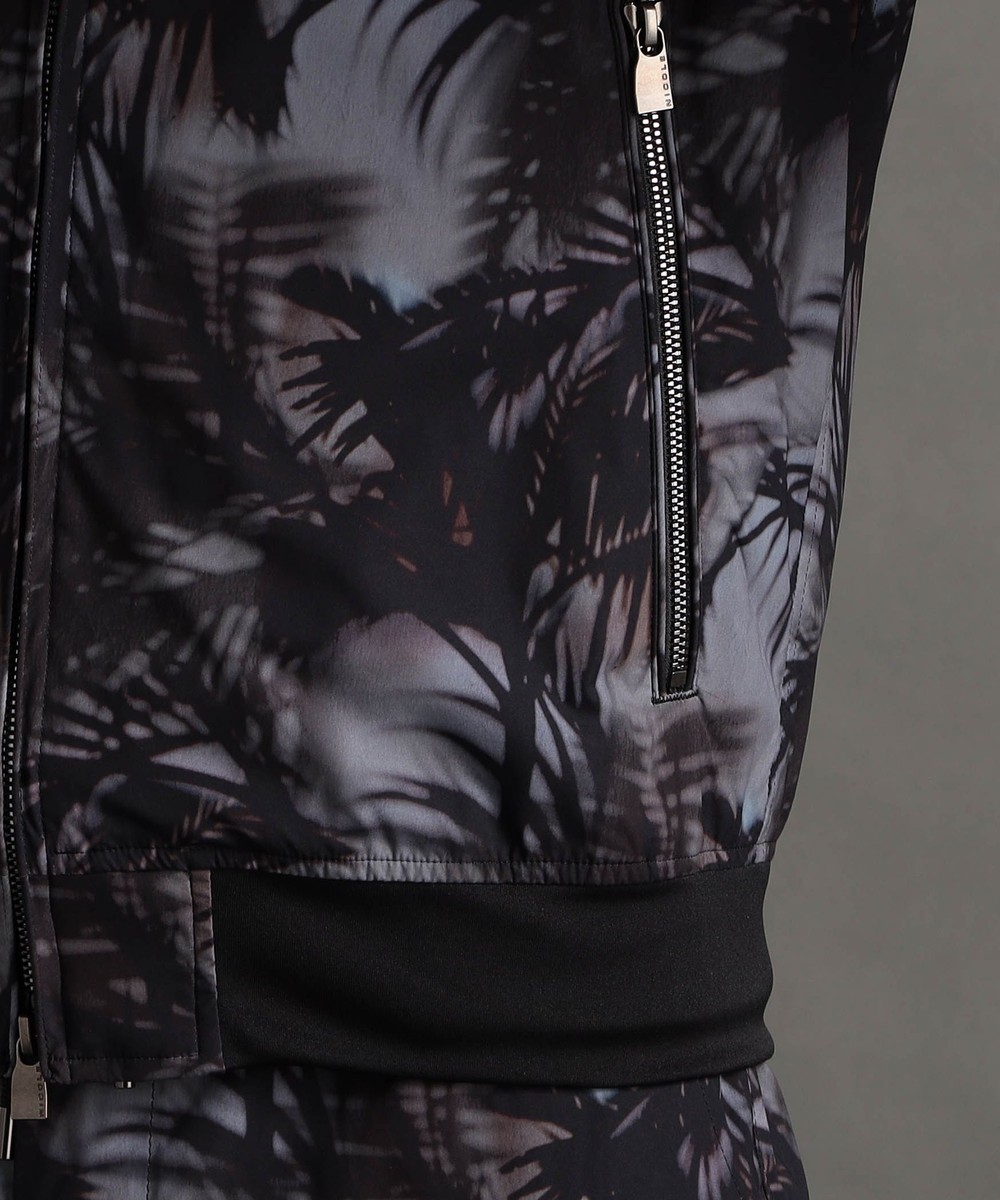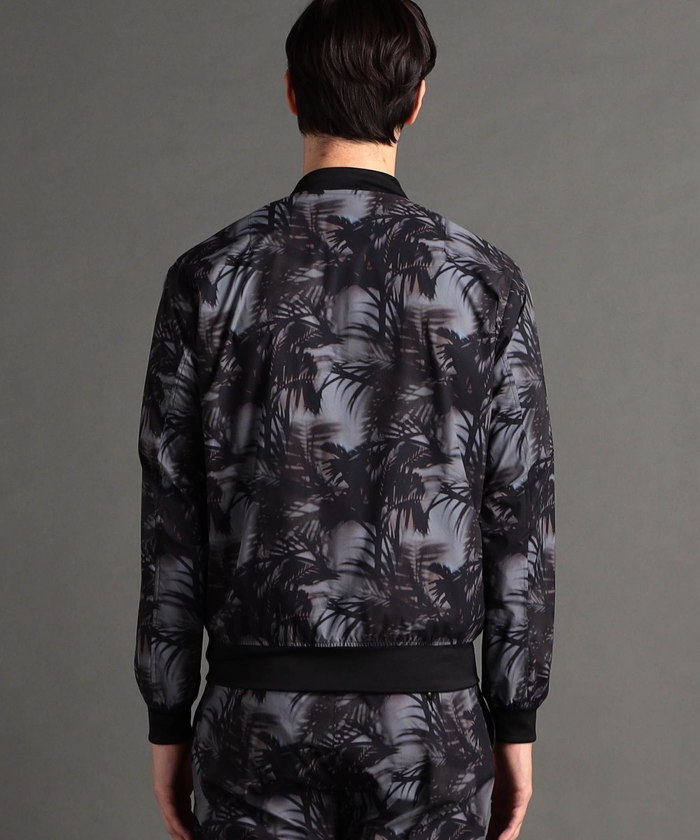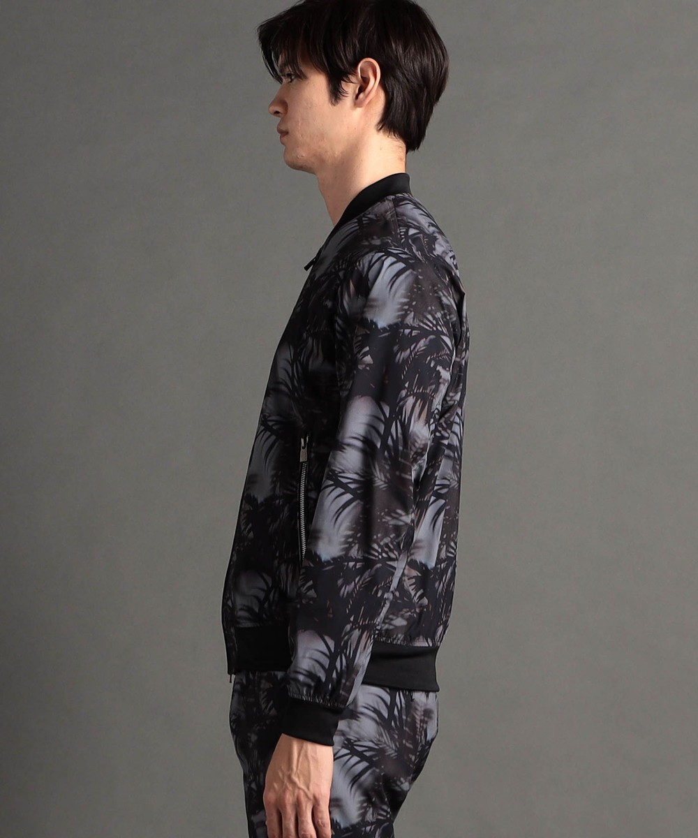 ダークなボタニカルモチーフをシャドーライクにプリントしたストレッチタフタを厳選採用。