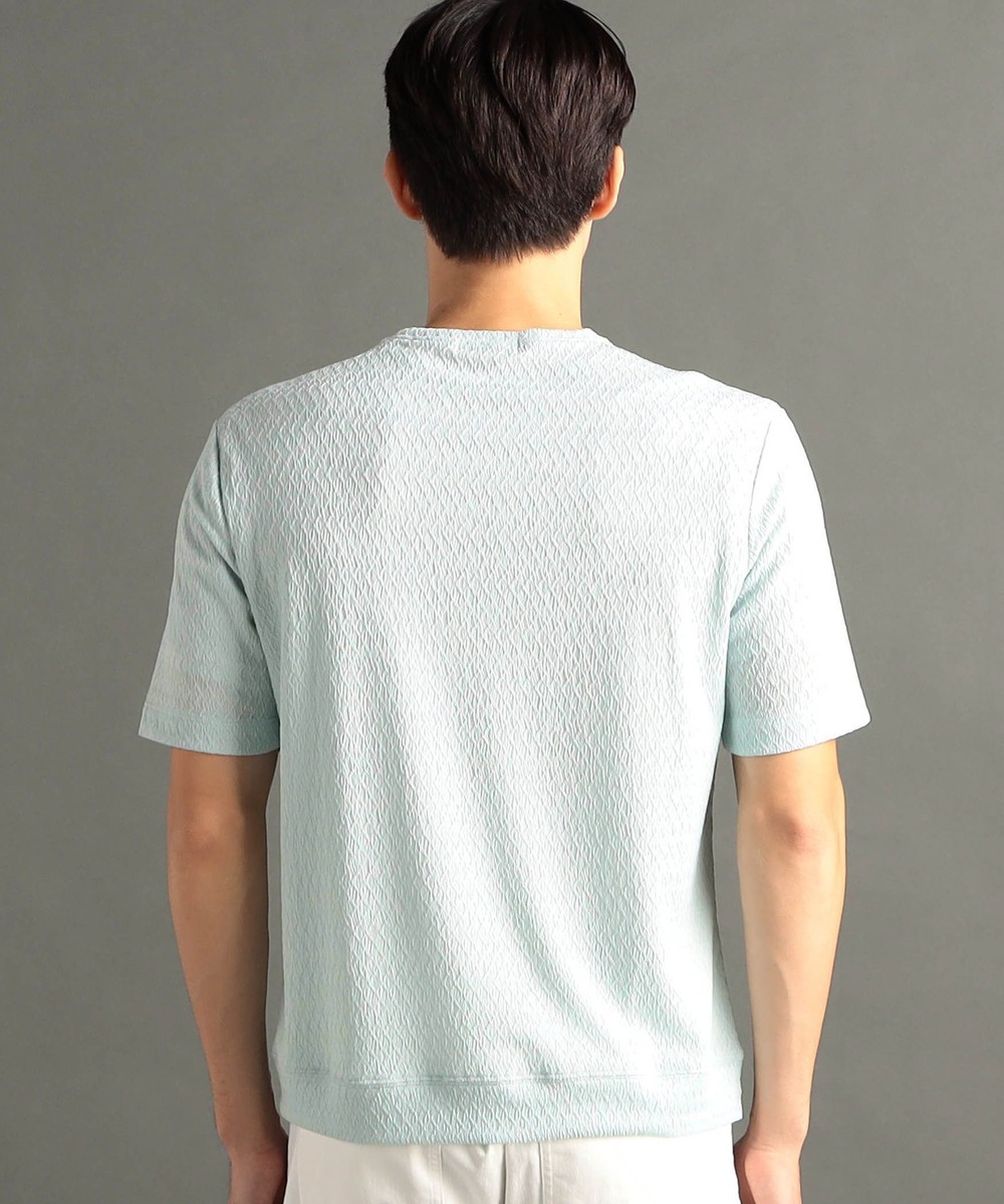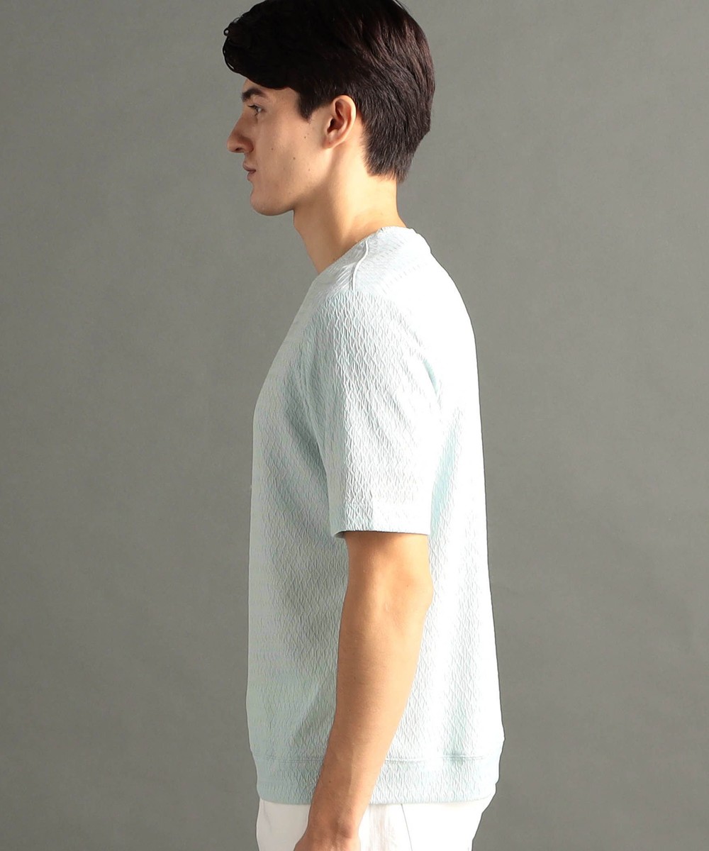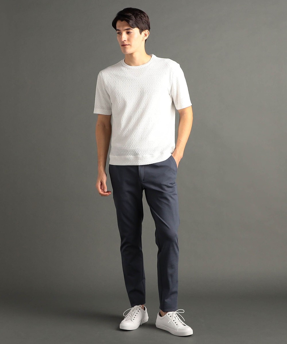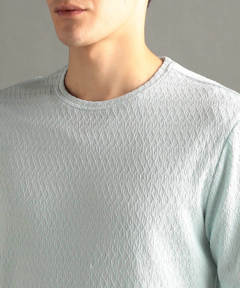 編地にテンションをかけて、程よいシボ感を表現した清涼感あるニット素材。