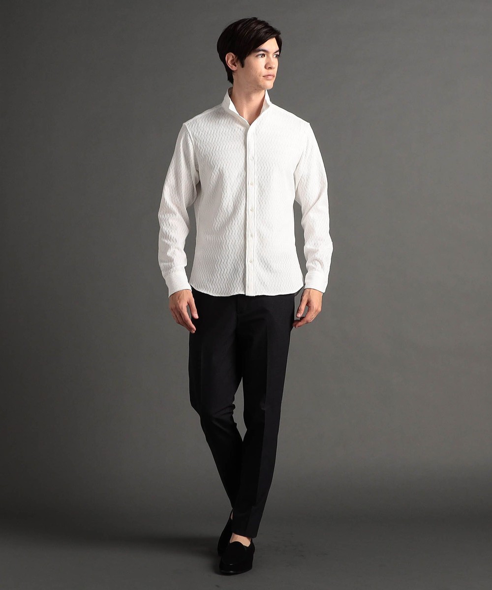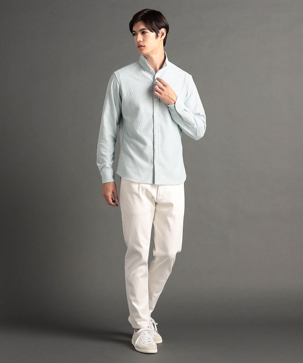 ミニマルなシャツカラーは、スタンドカラーにも着こなせるNew 2WAYデザイン。