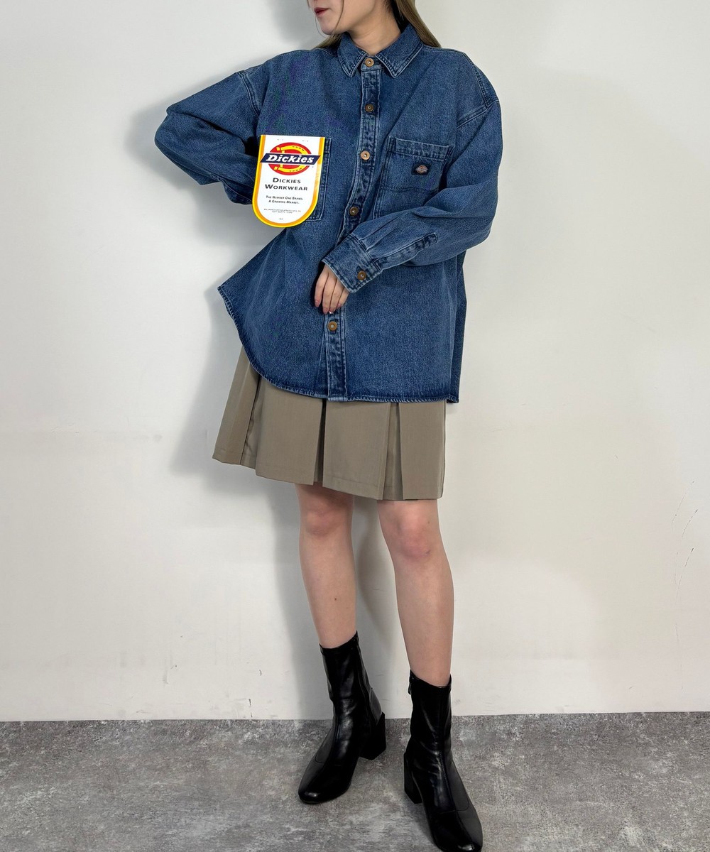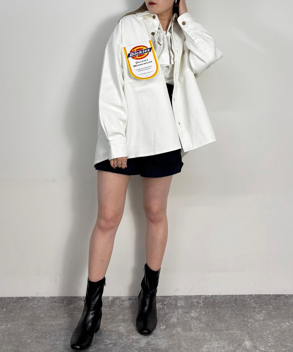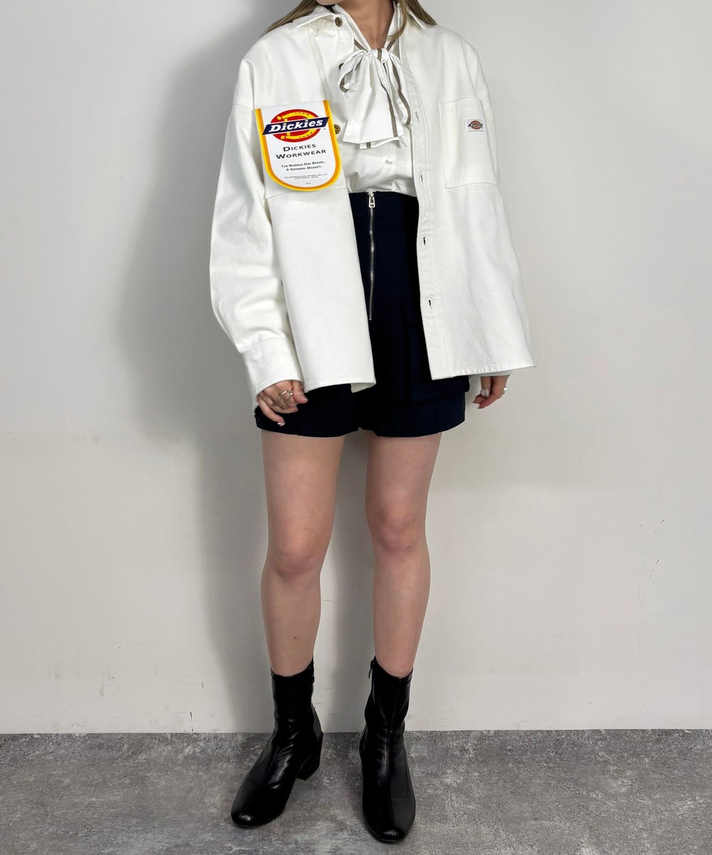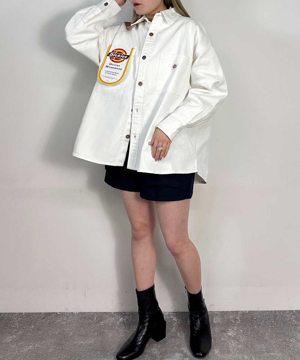 Dickiesのネームがワンポイントになったシャツジャケットをセレクト。