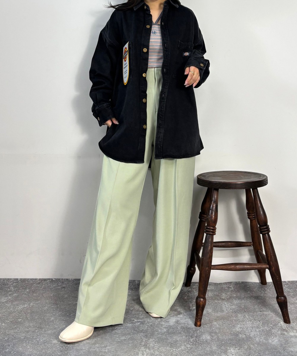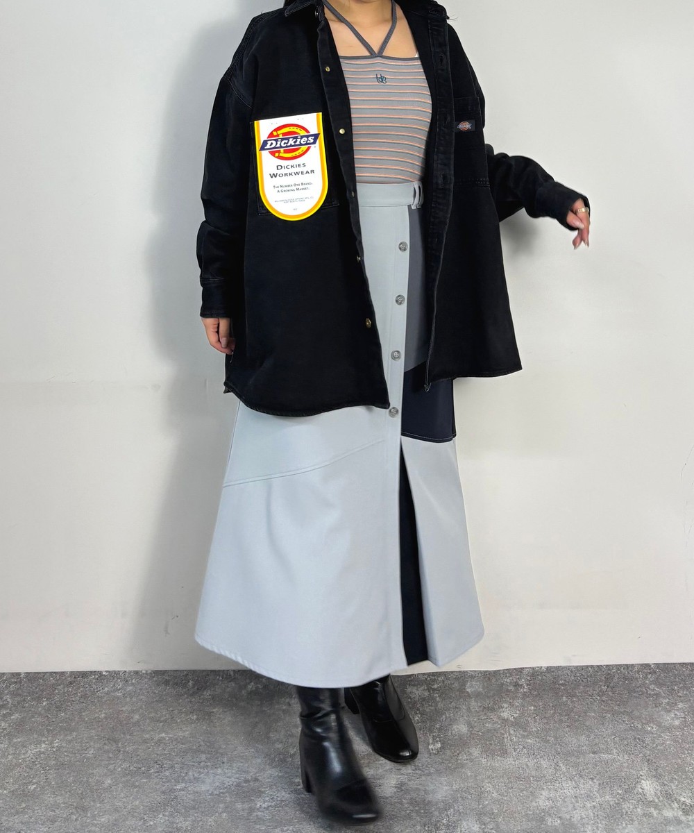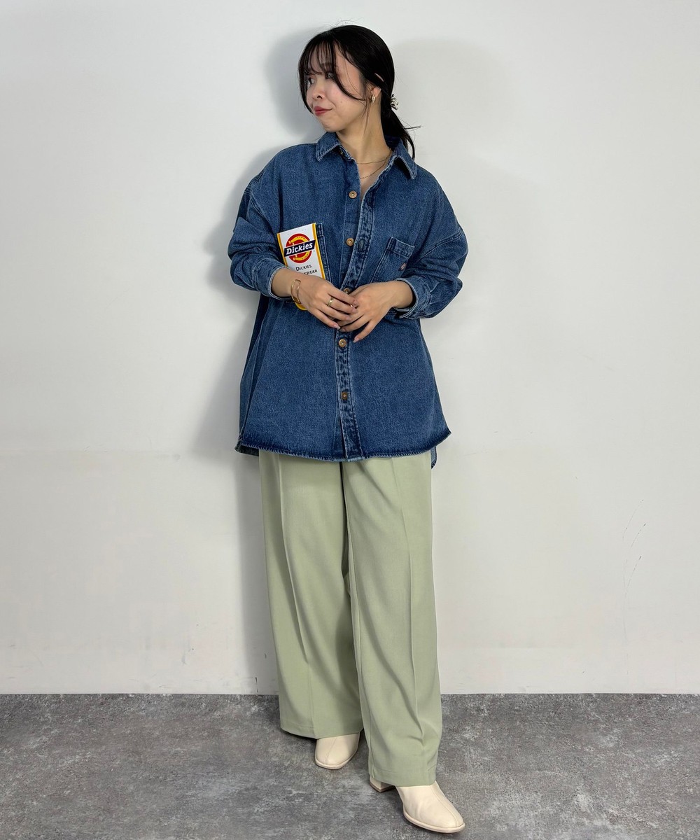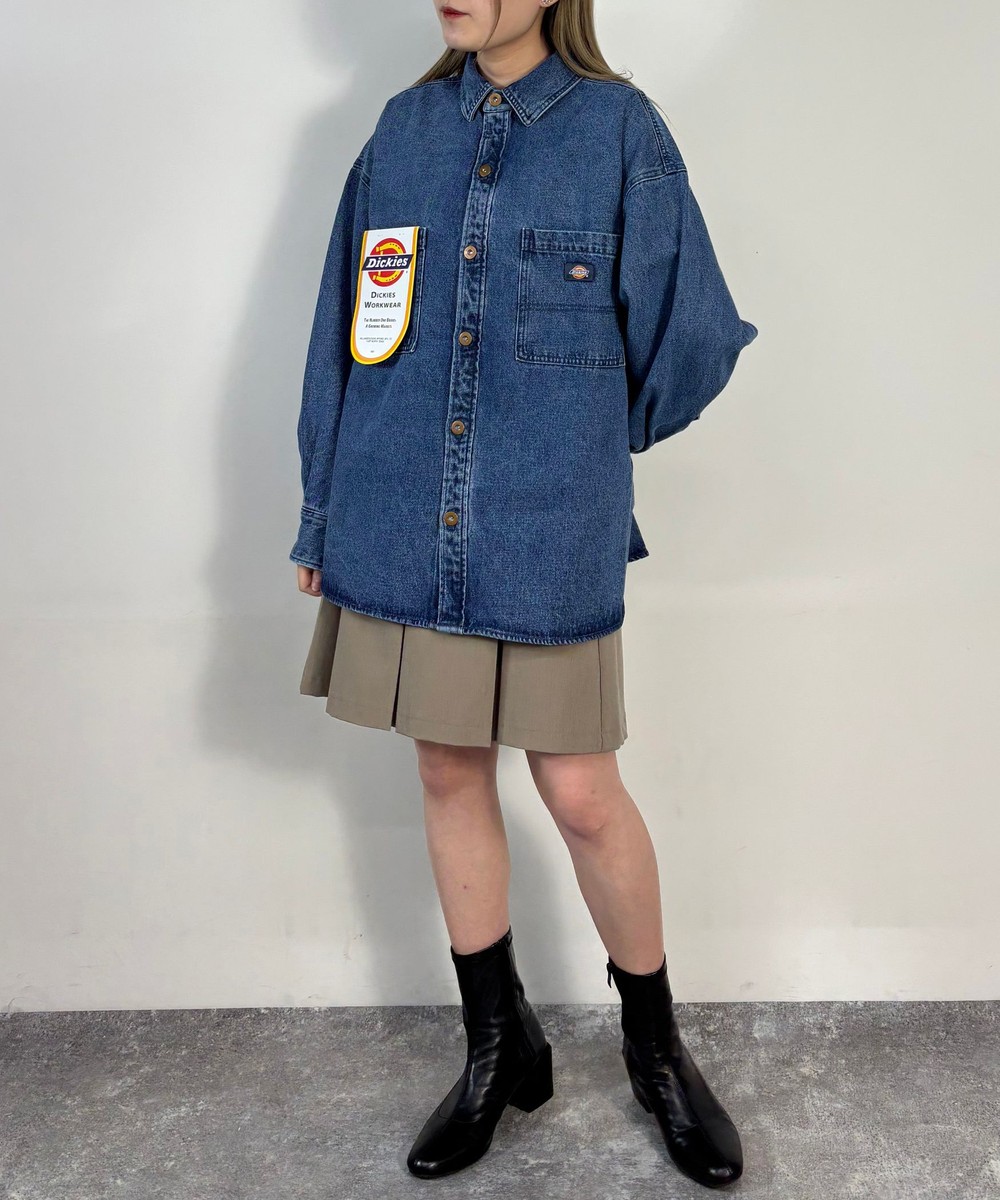 Dickiesのネームがワンポイントになったシャツジャケットをセレクト。