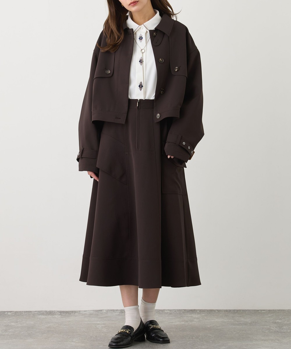 この春注目のトラッドスタイルに欠かせない、トレンチコートのディティールを生かしたショートジャケットが登場。