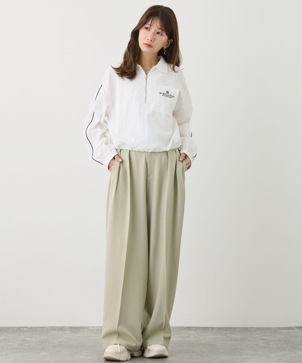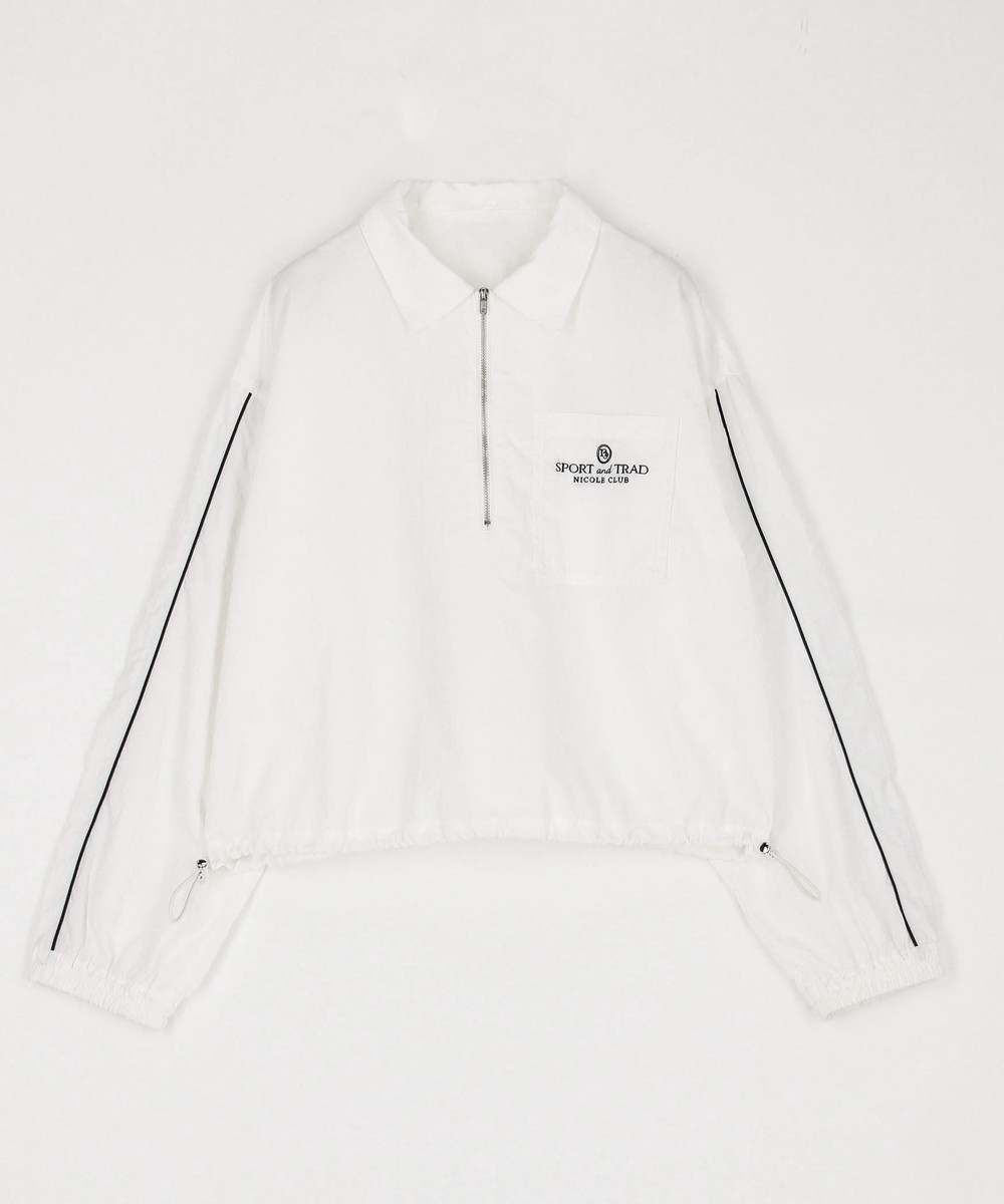 ナイロン生地が爽やかで春らしいハーフジッププルオーバー。