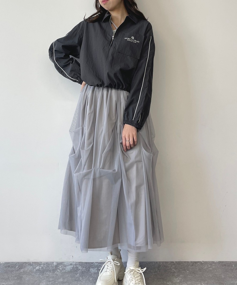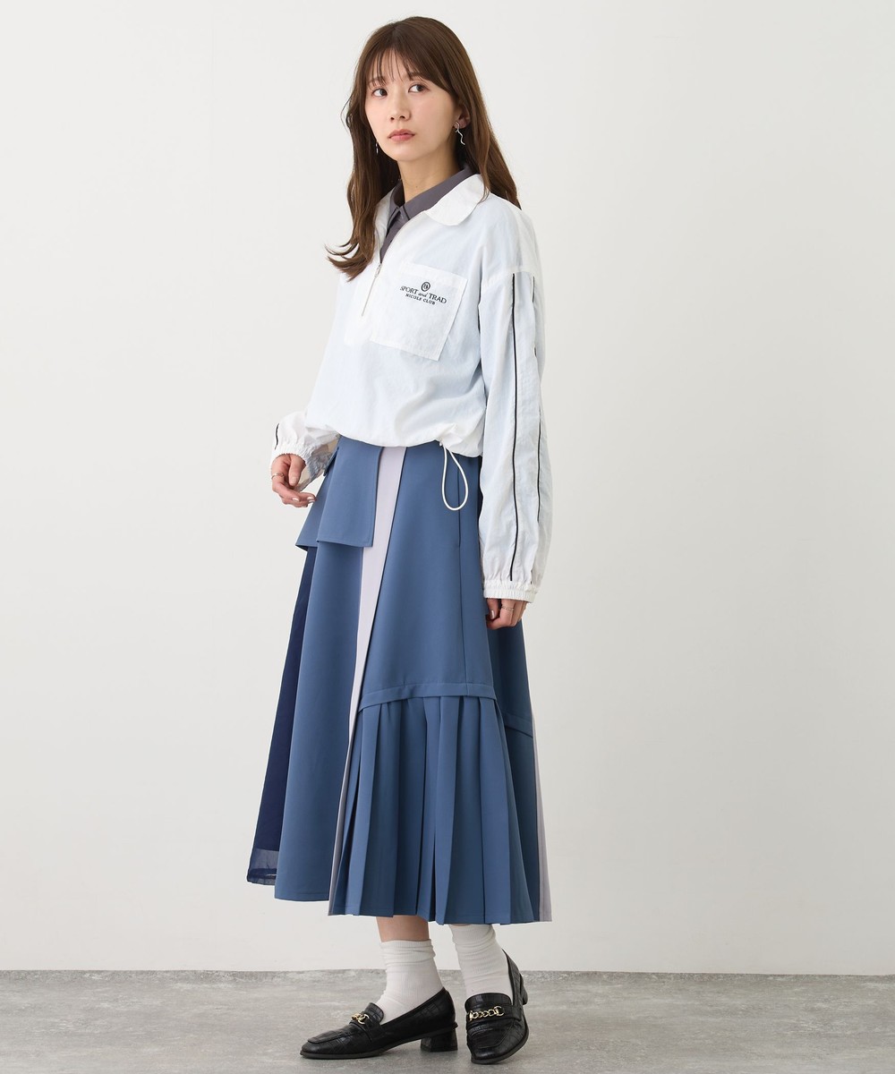 Iラインスカート合わせ+裾をしぼってタックイン風でのコーディネートがおすすめです!