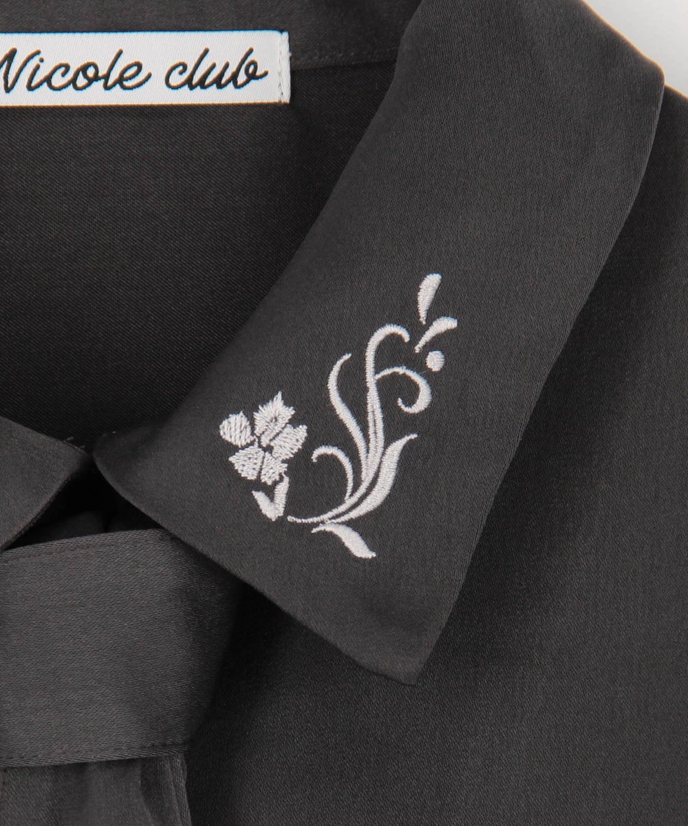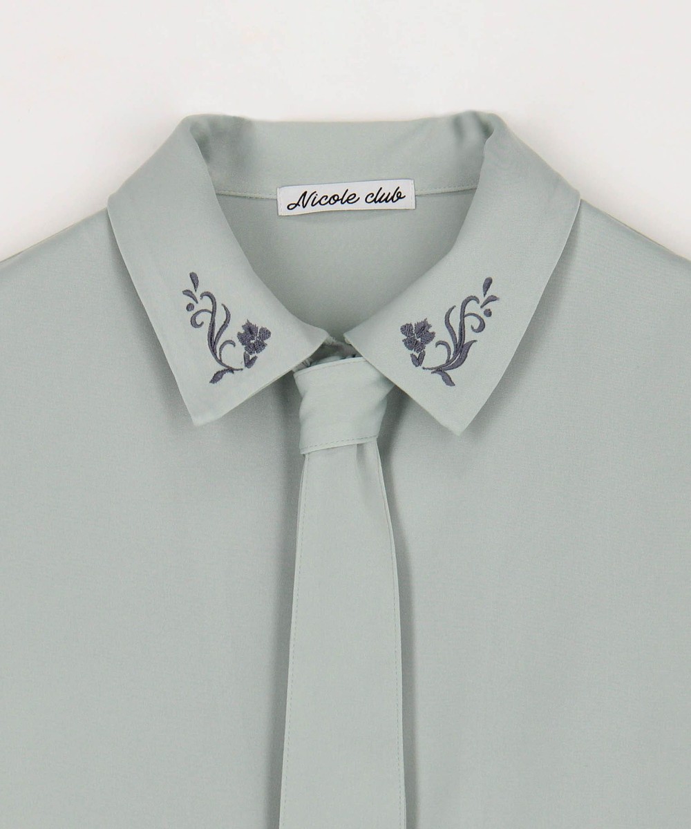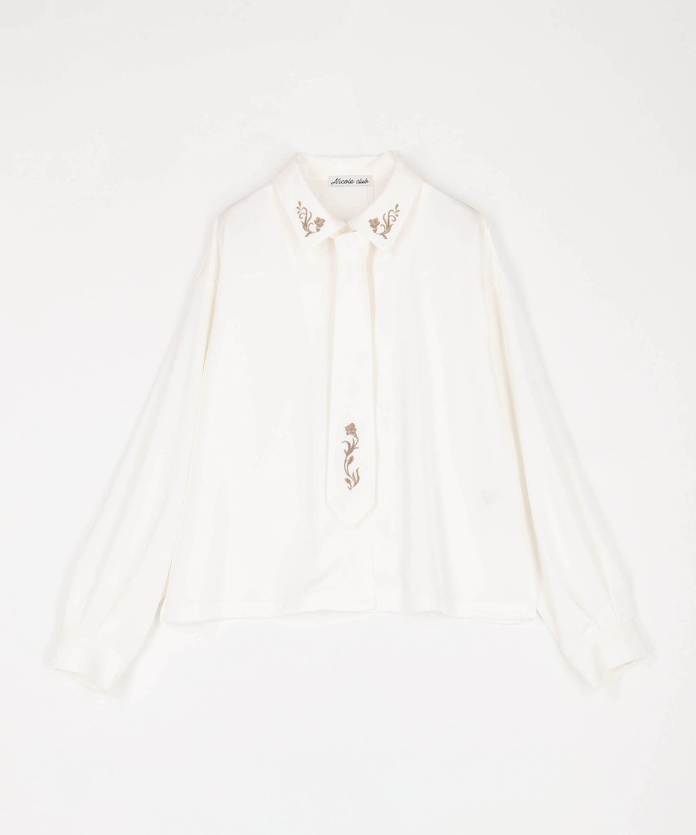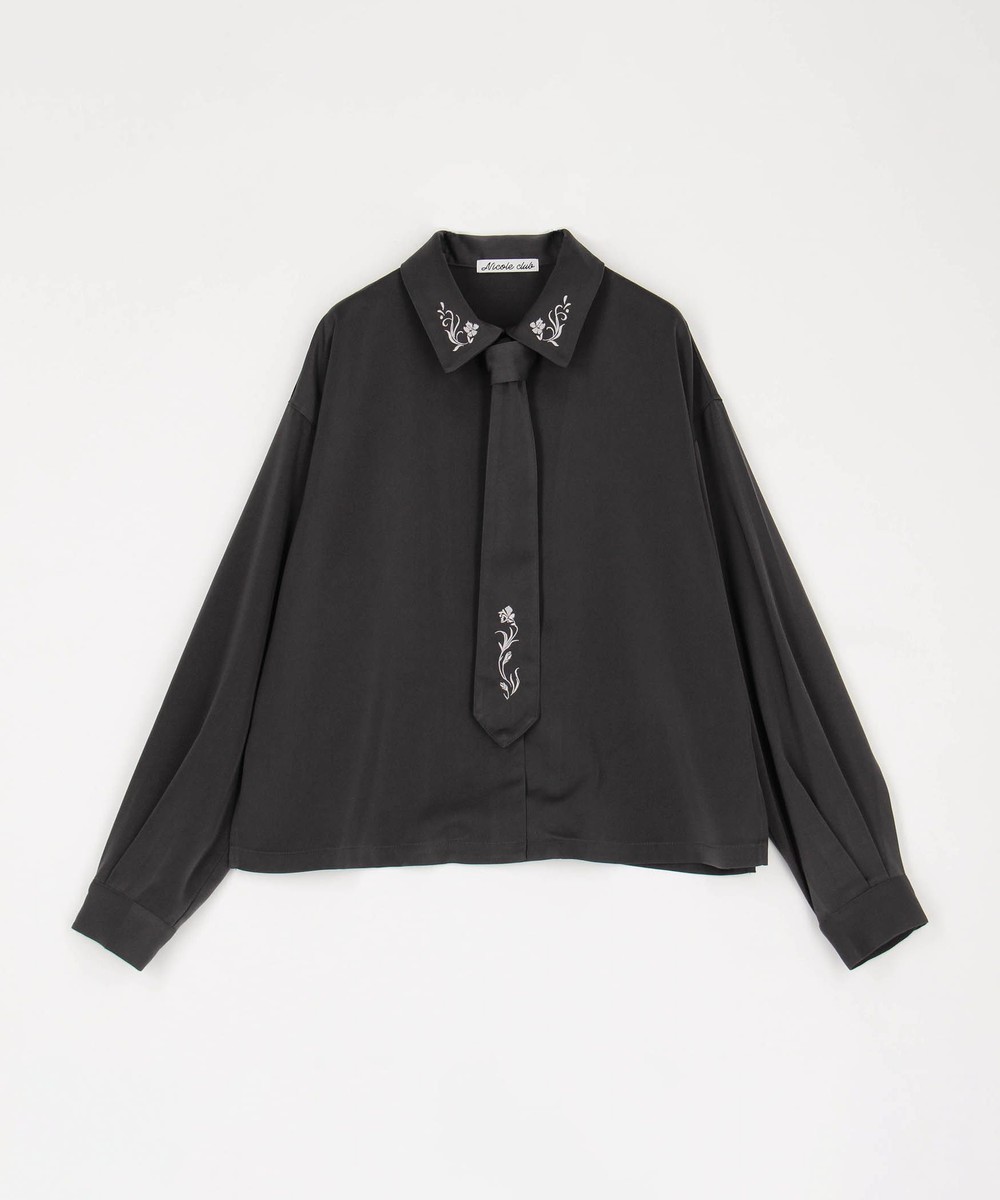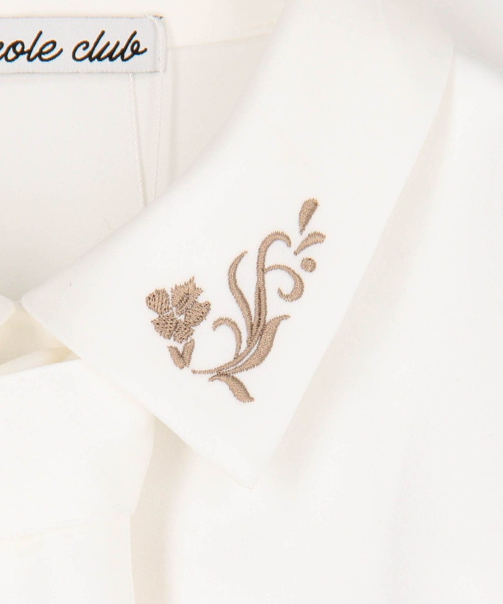 衿とネクタイにあしらったボタニカル風の刺繍がクラシカルで目を惹き、コーデのポイントになります。