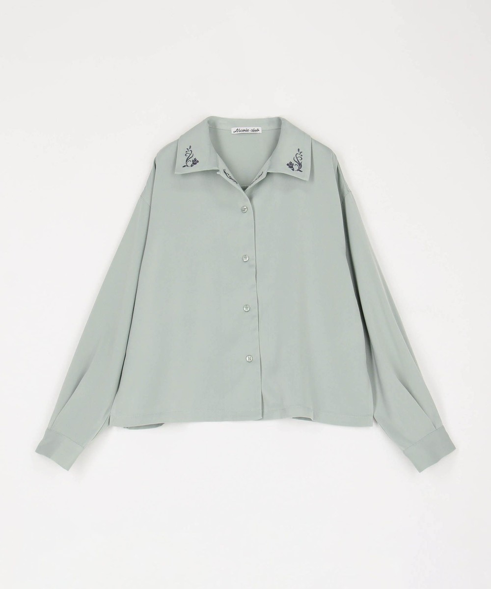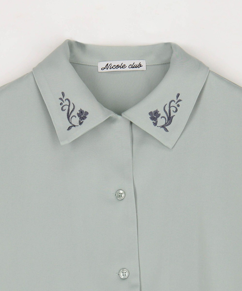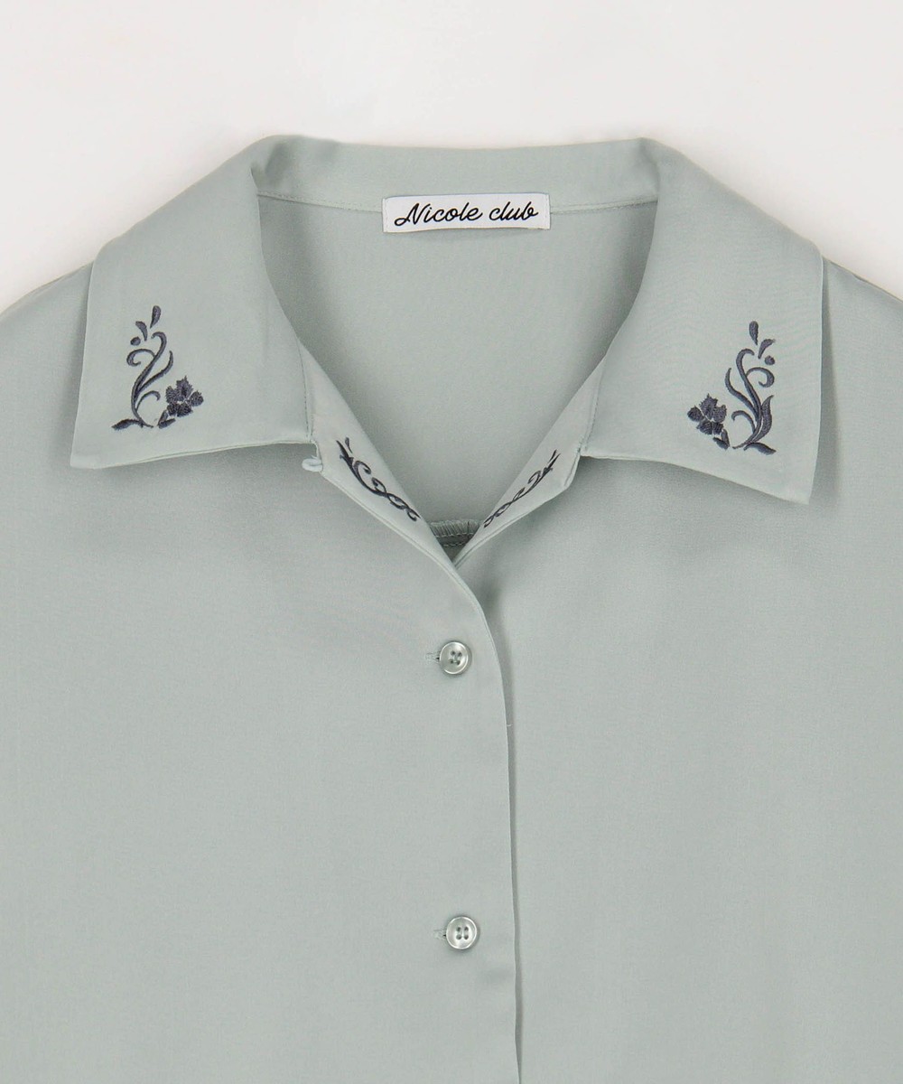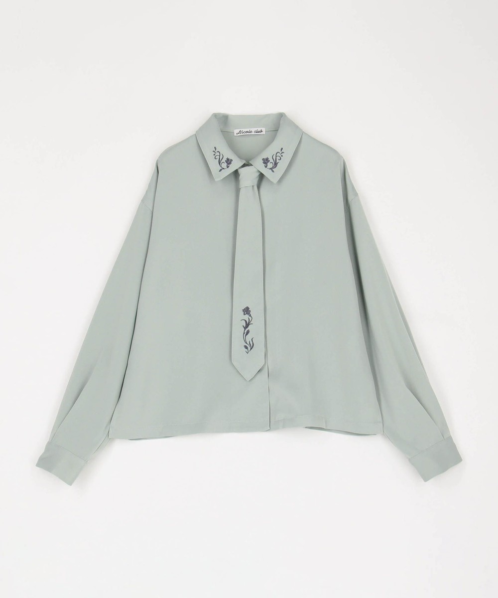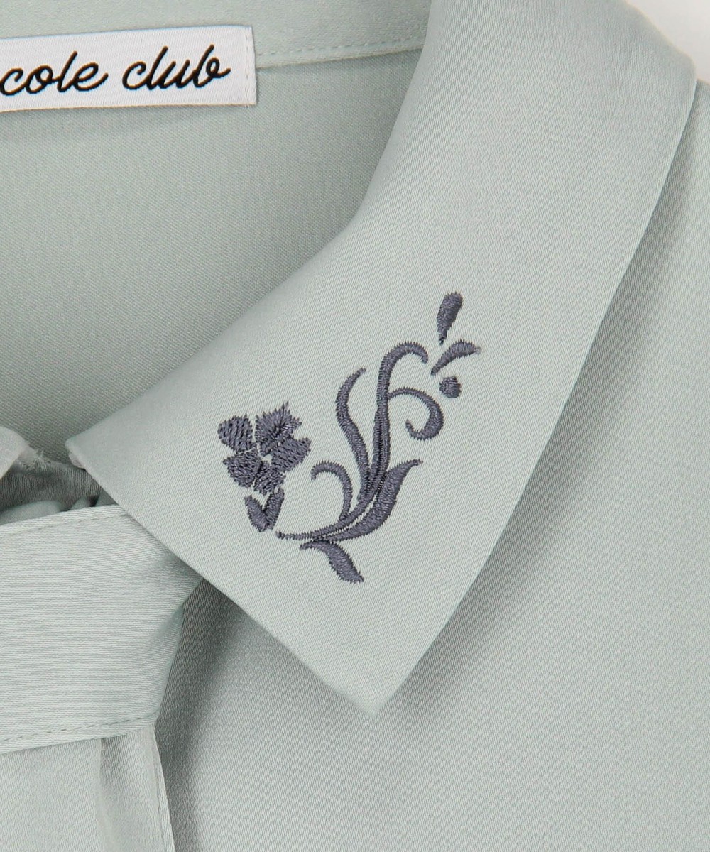 衿とネクタイにあしらったボタニカル風の刺繍がクラシカルで目を惹き、コーデのポイントになります。