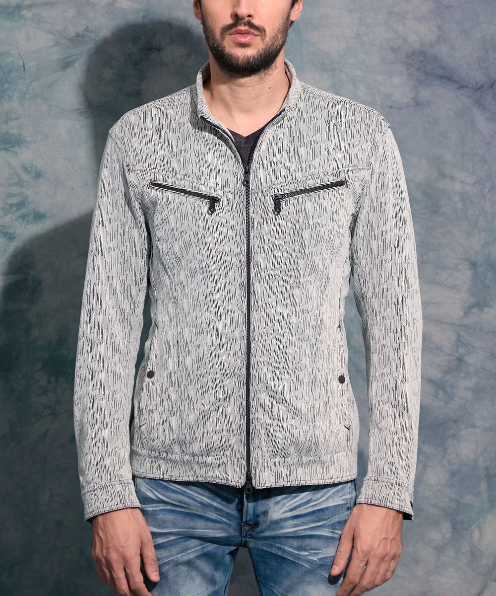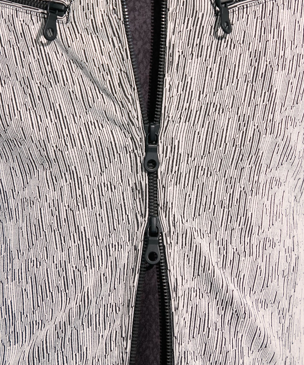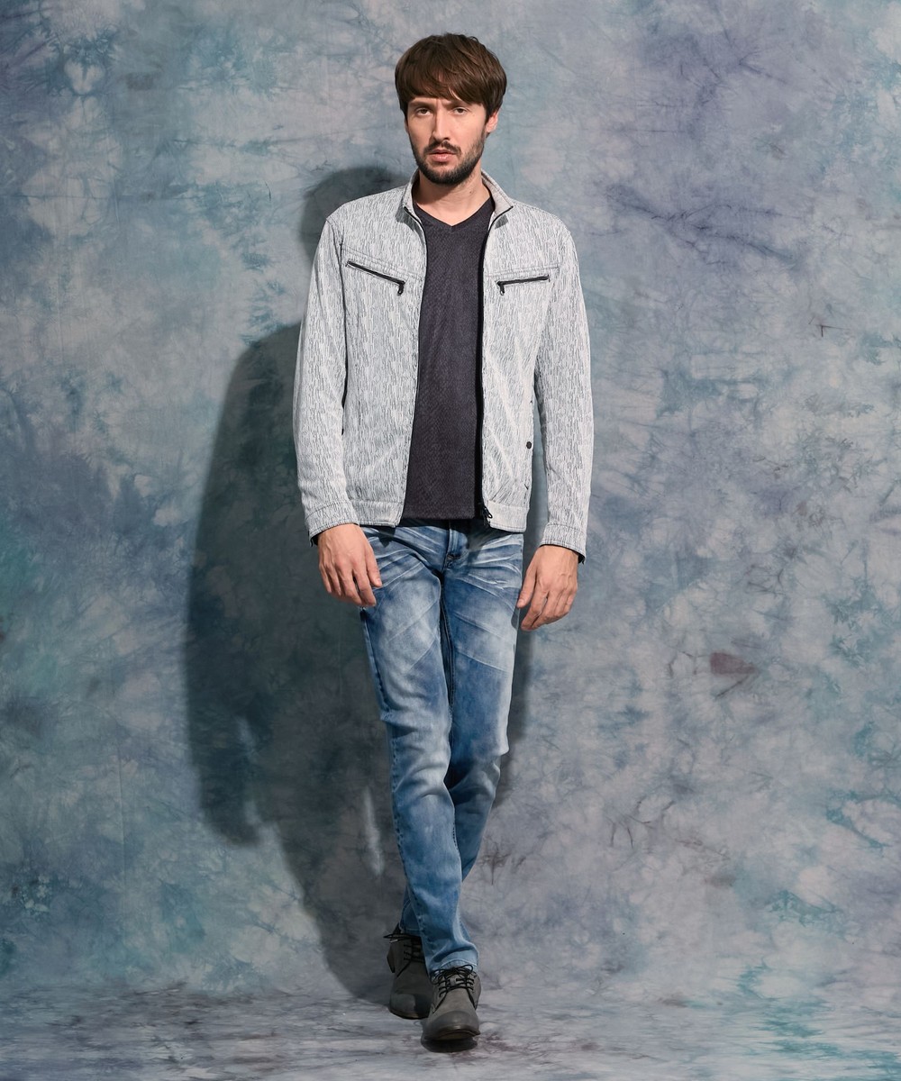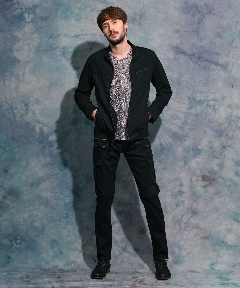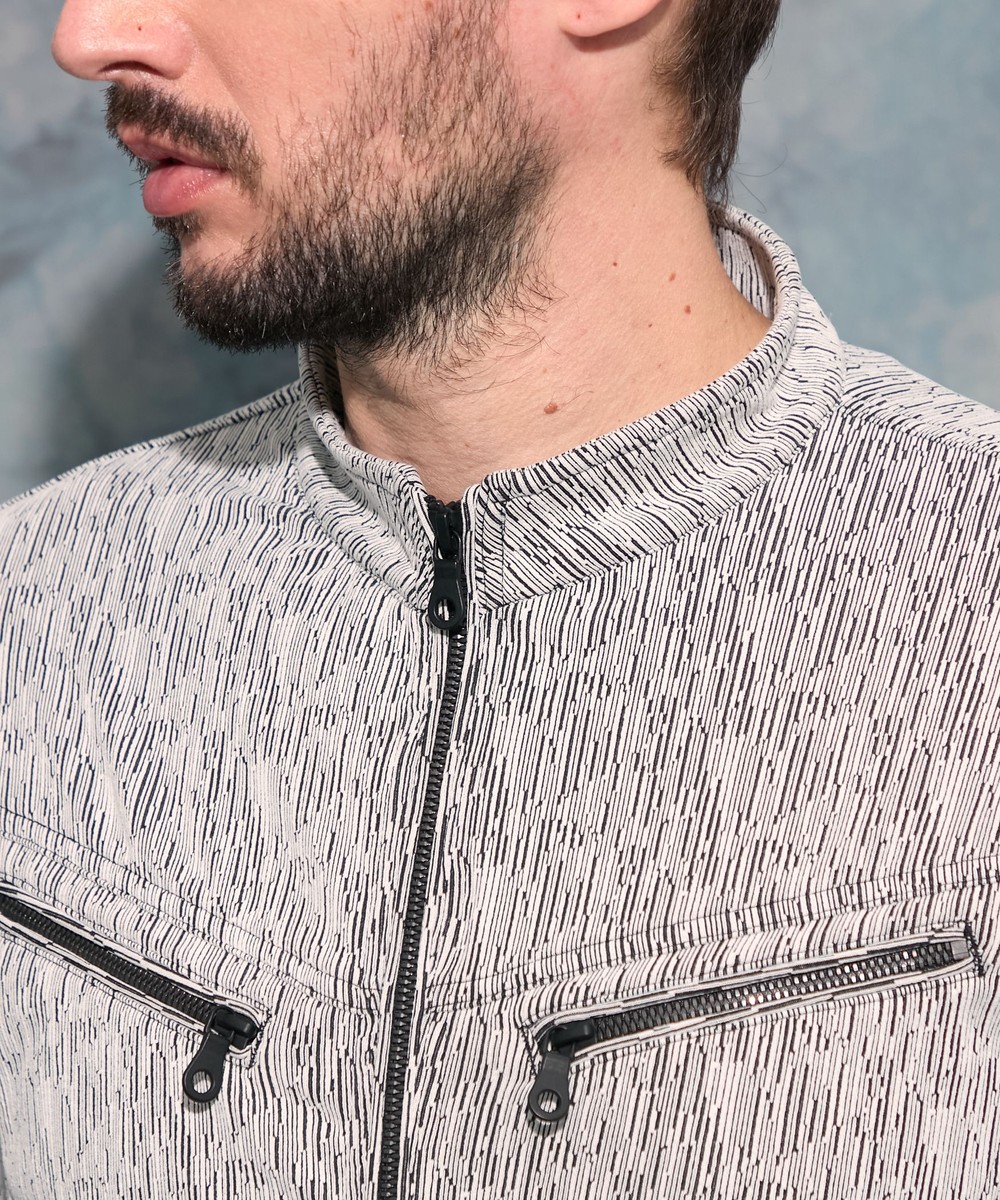 両胸のダブルファスナーが特長のライダースデザインブルゾン。