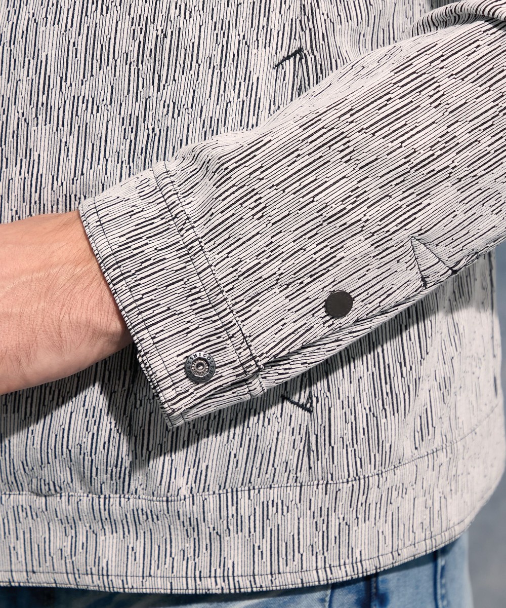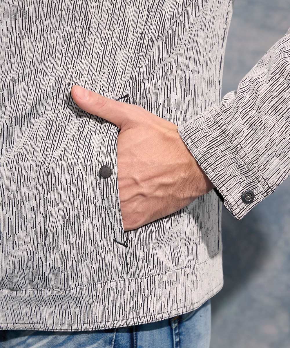 ウエストにシェイプを入れた細身のサイズ設定ですが、袖周りにゆとりを持たせる事で着心地をアップさせております。