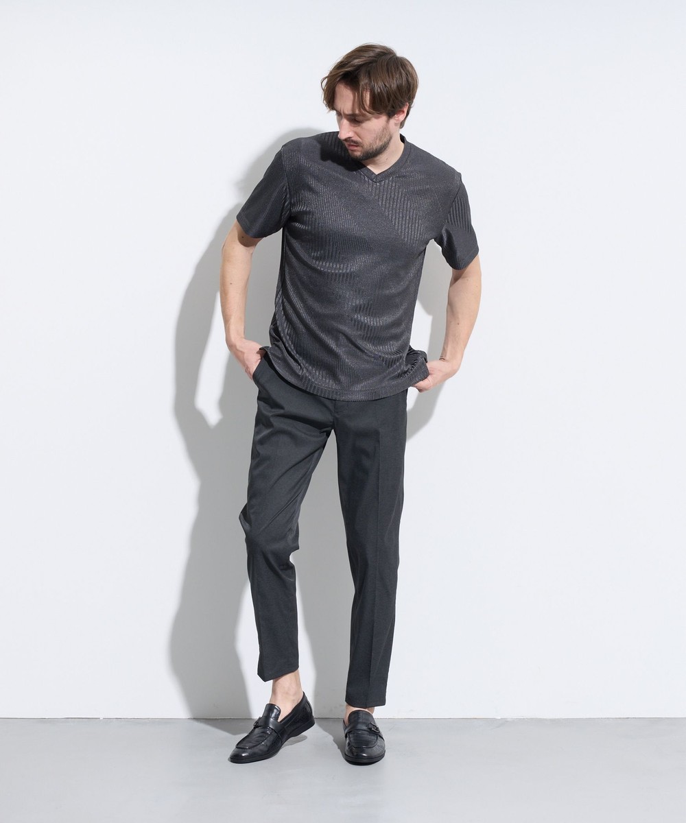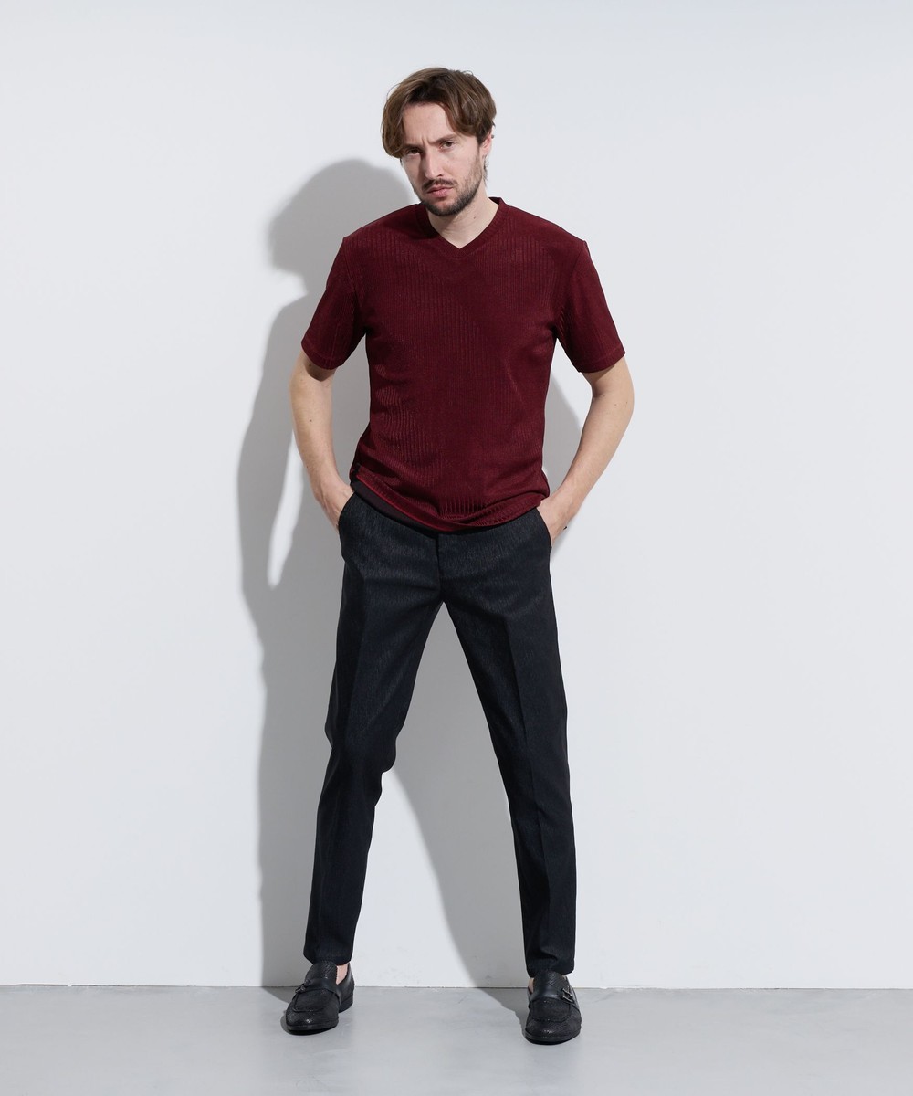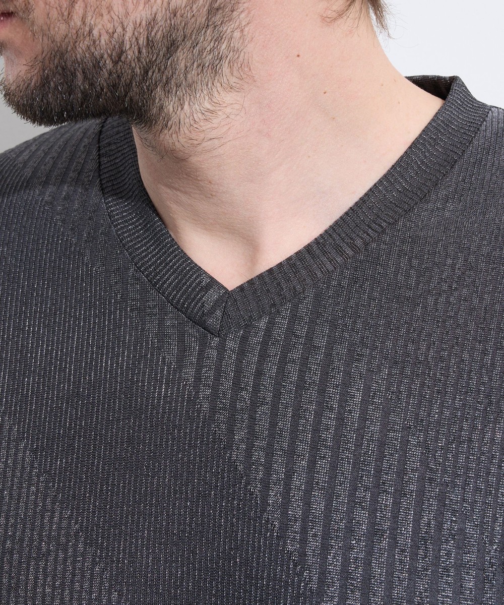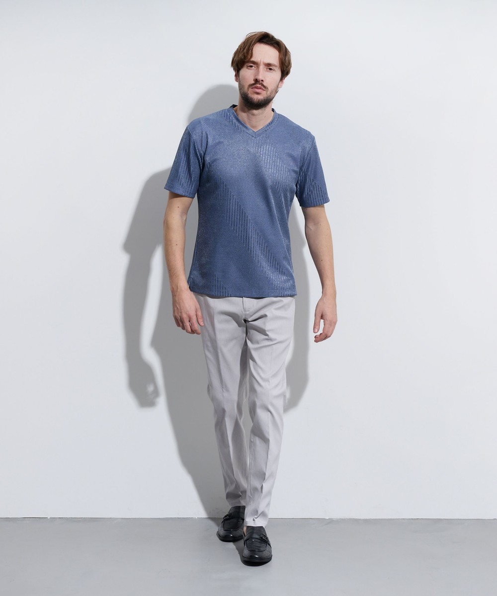様々なスタイルに合せやすい浅めのVネックとサイドスリットがポイントのシンプルな半袖カットソーです。