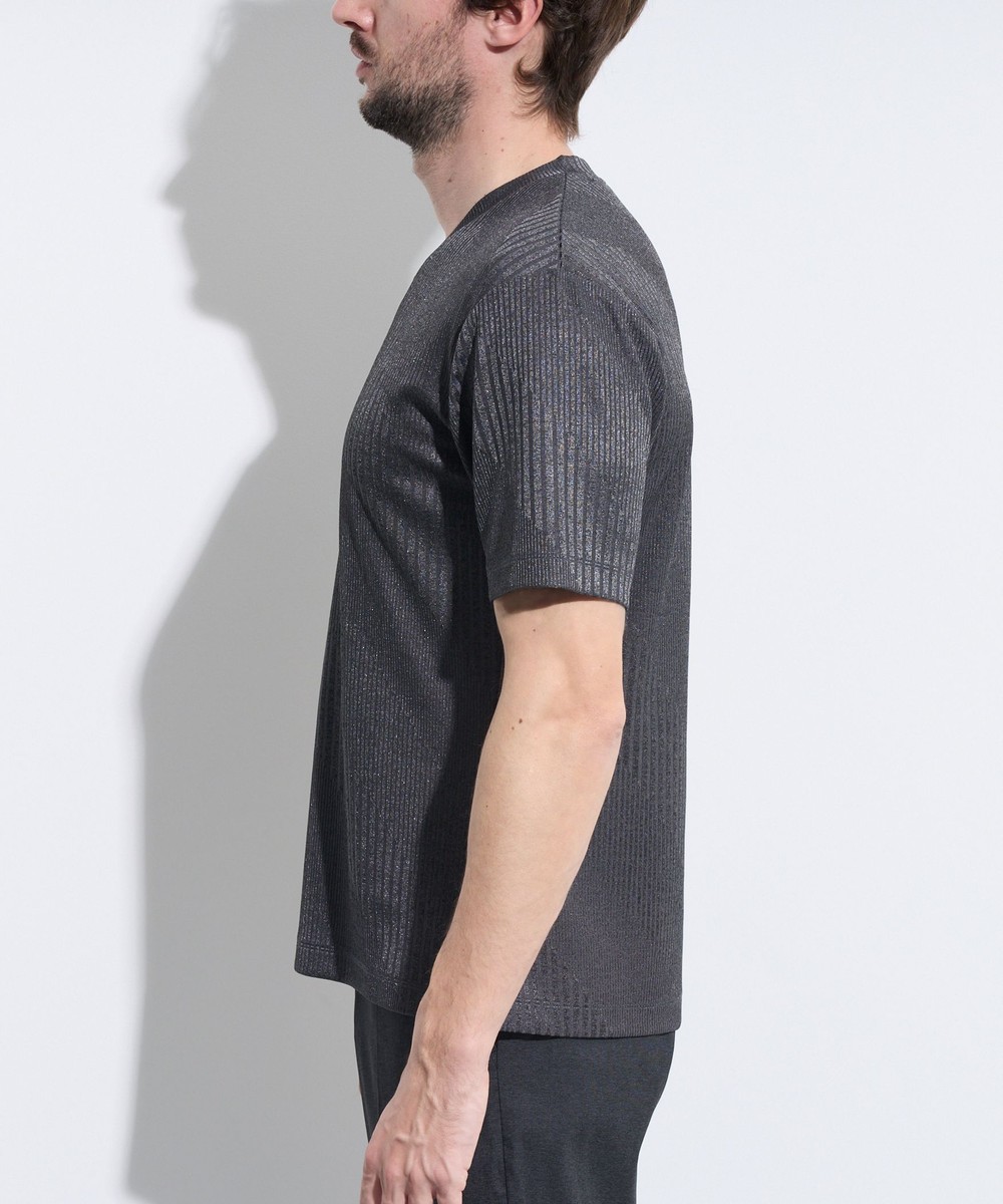 光沢の強いジャカードカットソー素材に薄いメッシュのボンディングを施した素材を使用。