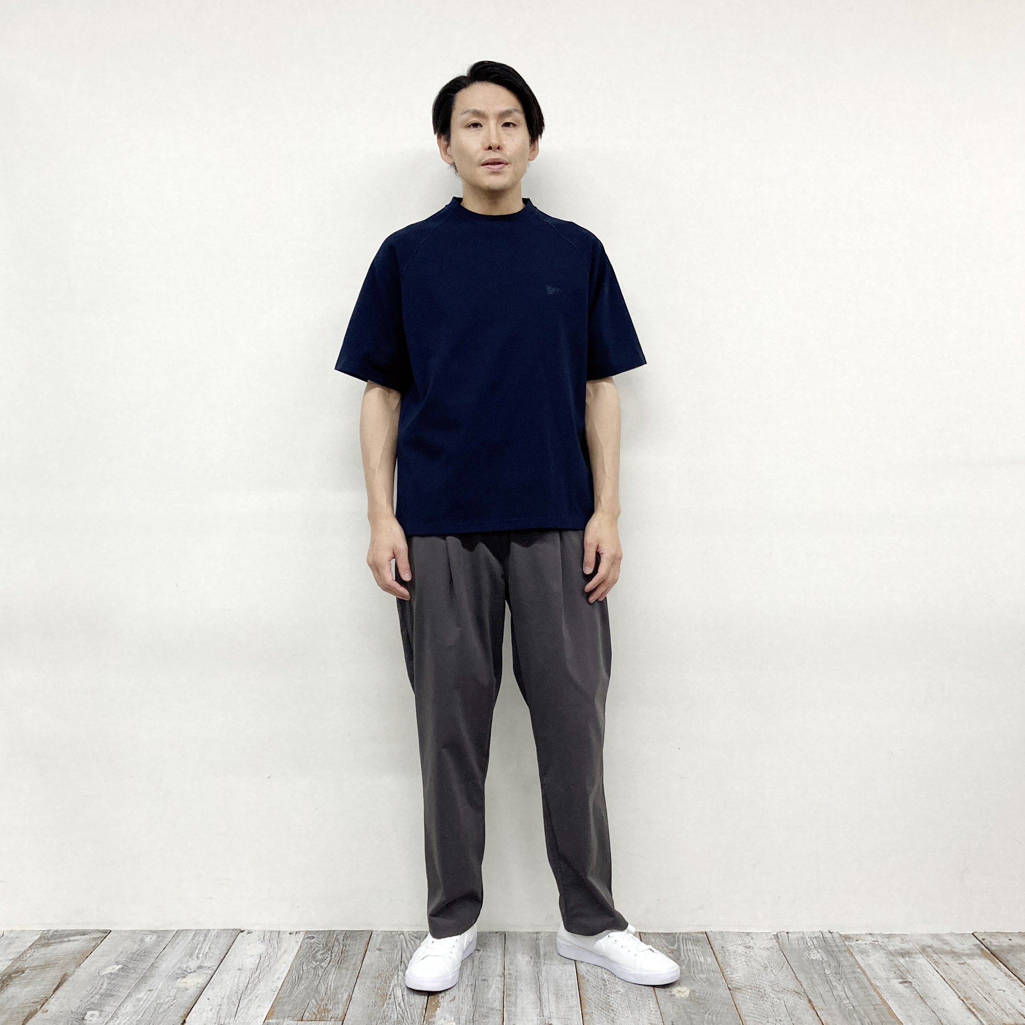 程良くゆとりのあるサイズ感で、ラグランスリーブにしているので肩傾斜が滑らかに見えるのもポインとです。裾を切り替えるでインナーで着てもだらしなく見えないようにしています。