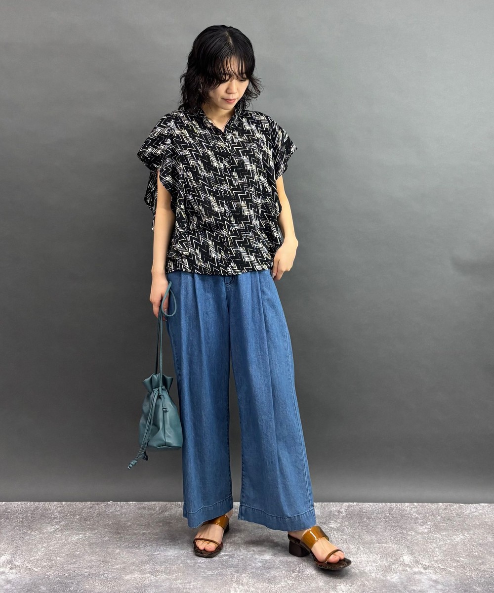 【フリル袖の柄シャツ】