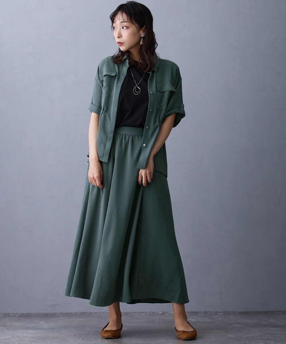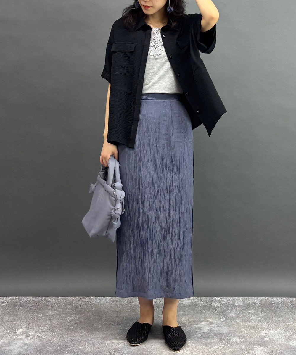 同素材のスカート(メーカー品番:5205-0222)と合わせると統一感のあるセットアップコーデを楽しめます。