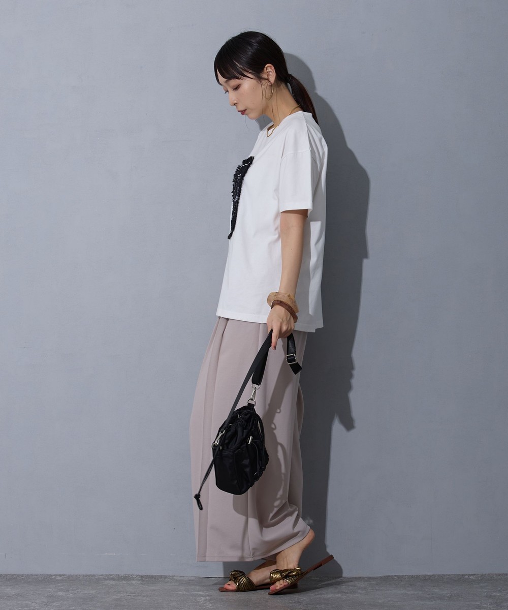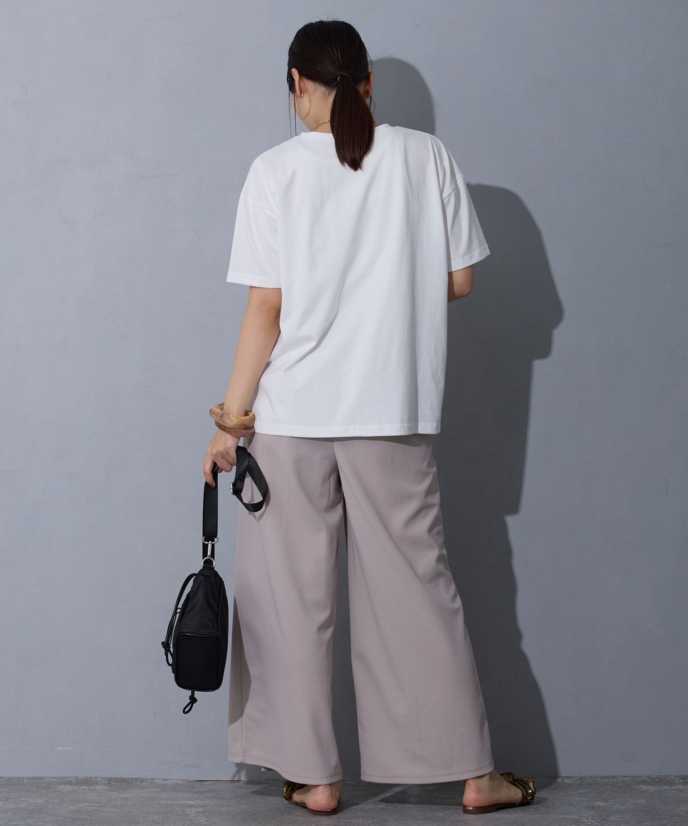 程よくワイドなシルエットはカジュアルすぎず、大人Tシャツコーデを演出してくれます。