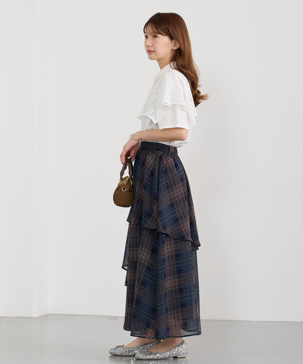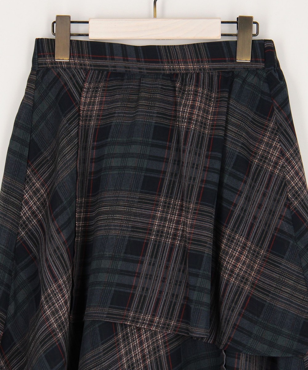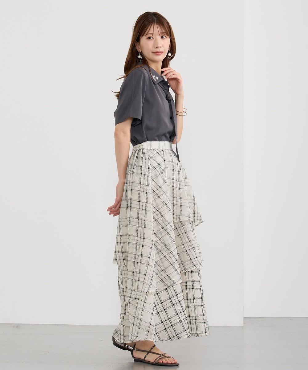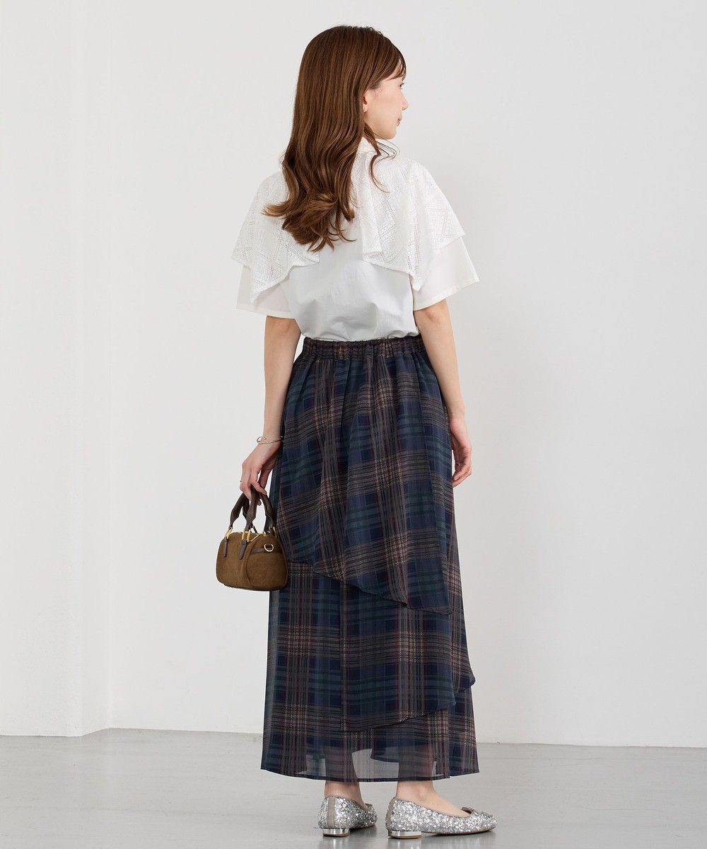 生地をたっぷり使ったレイヤードデザインとチェックが華やかな一枚。