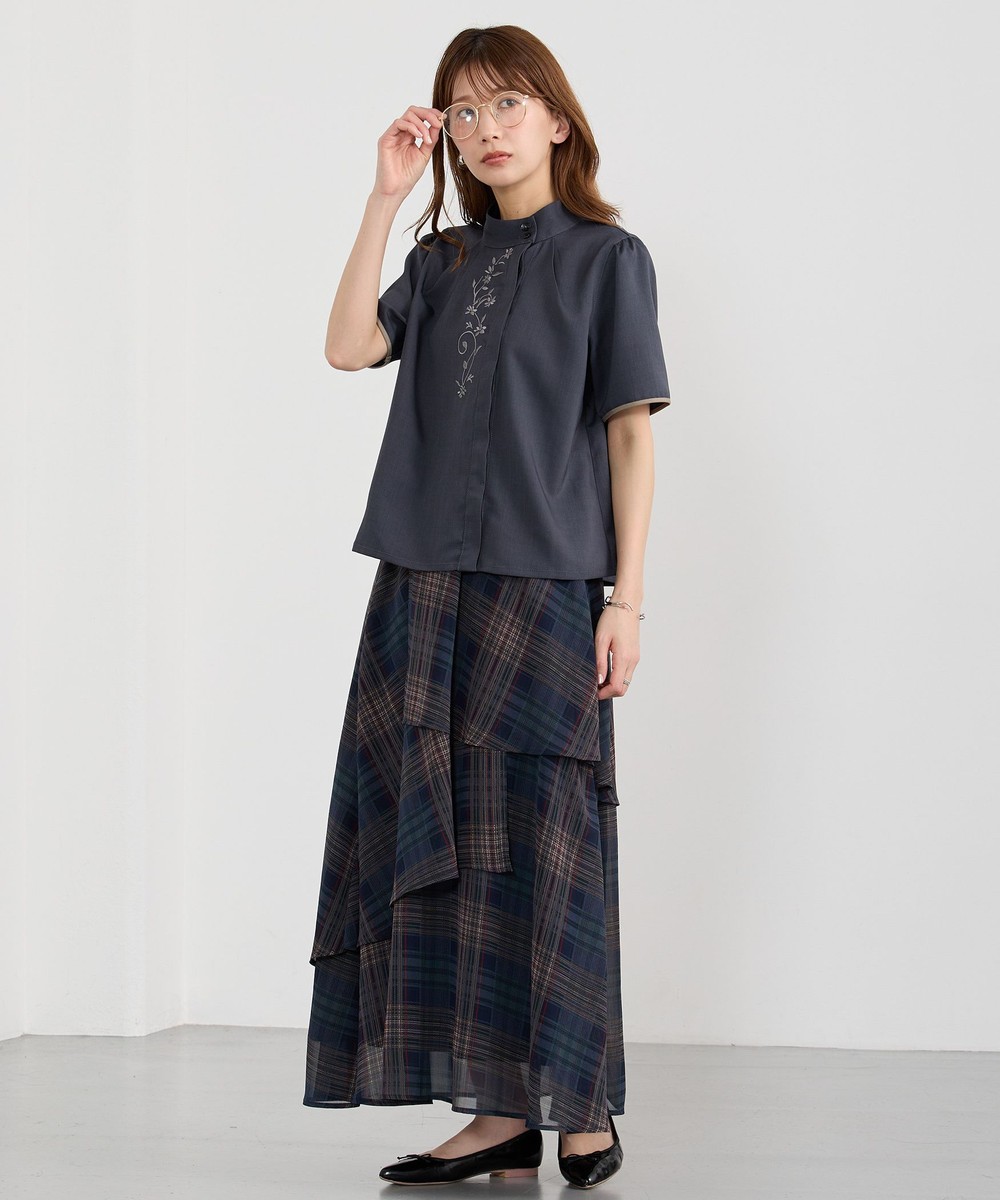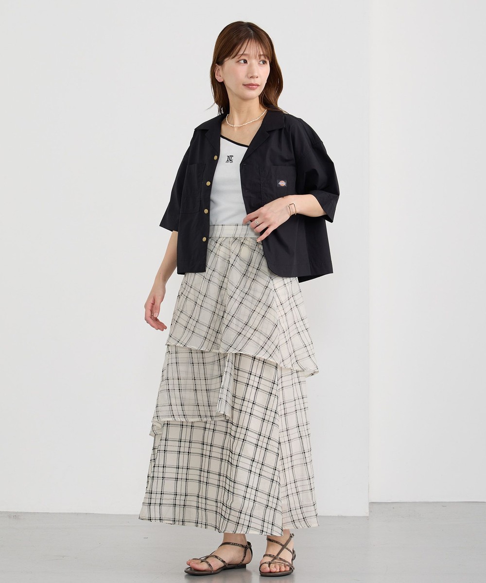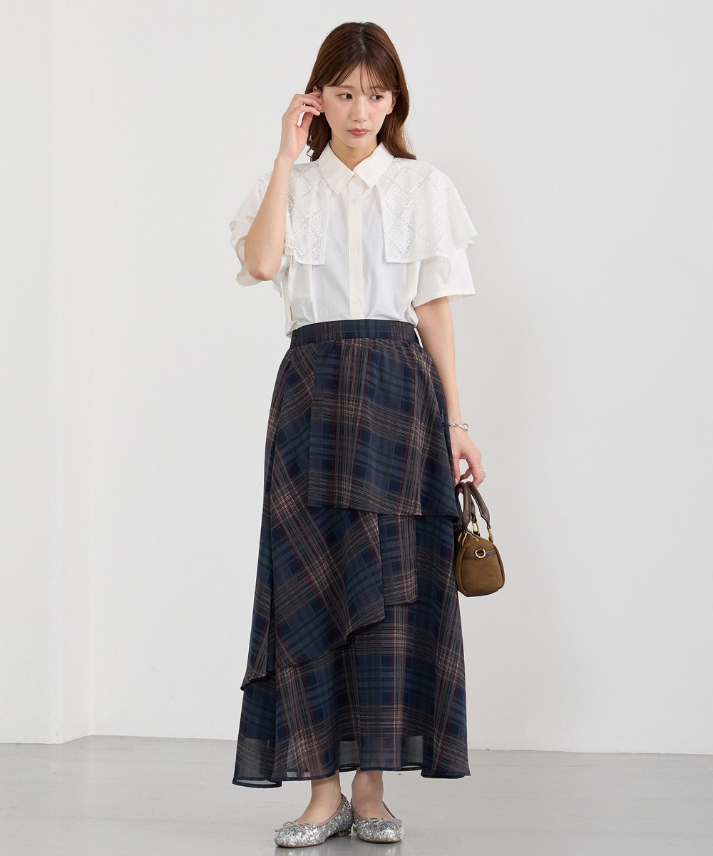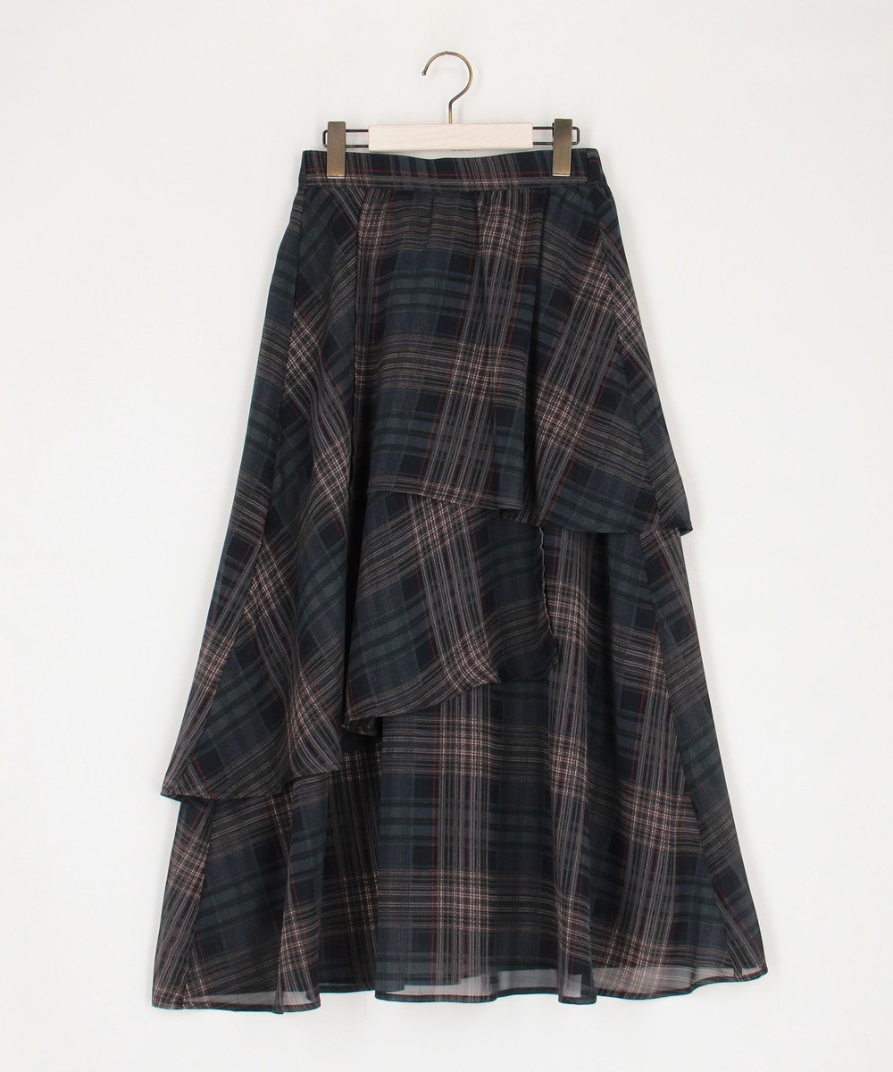 生地をたっぷり使ったレイヤードデザインとチェックが華やかな一枚。