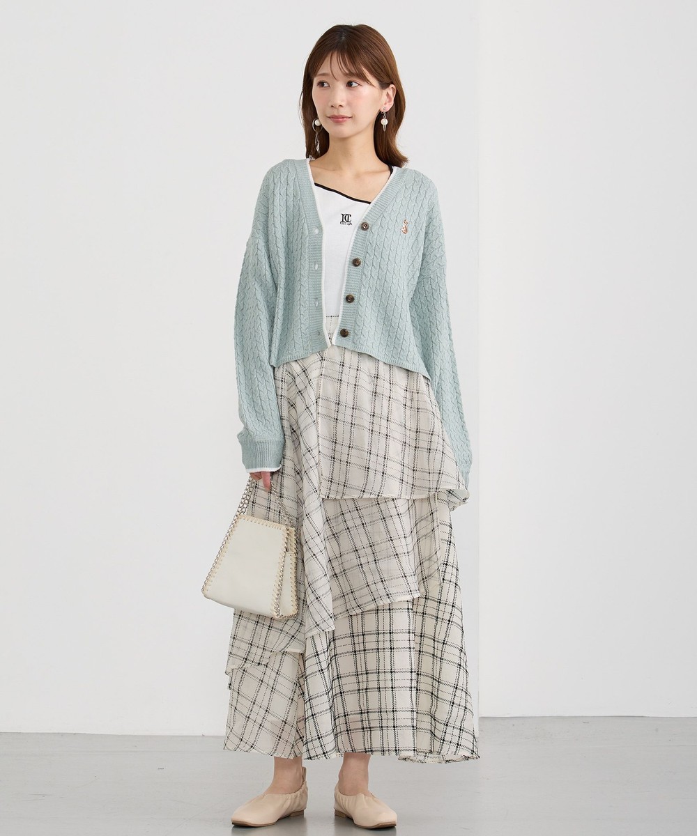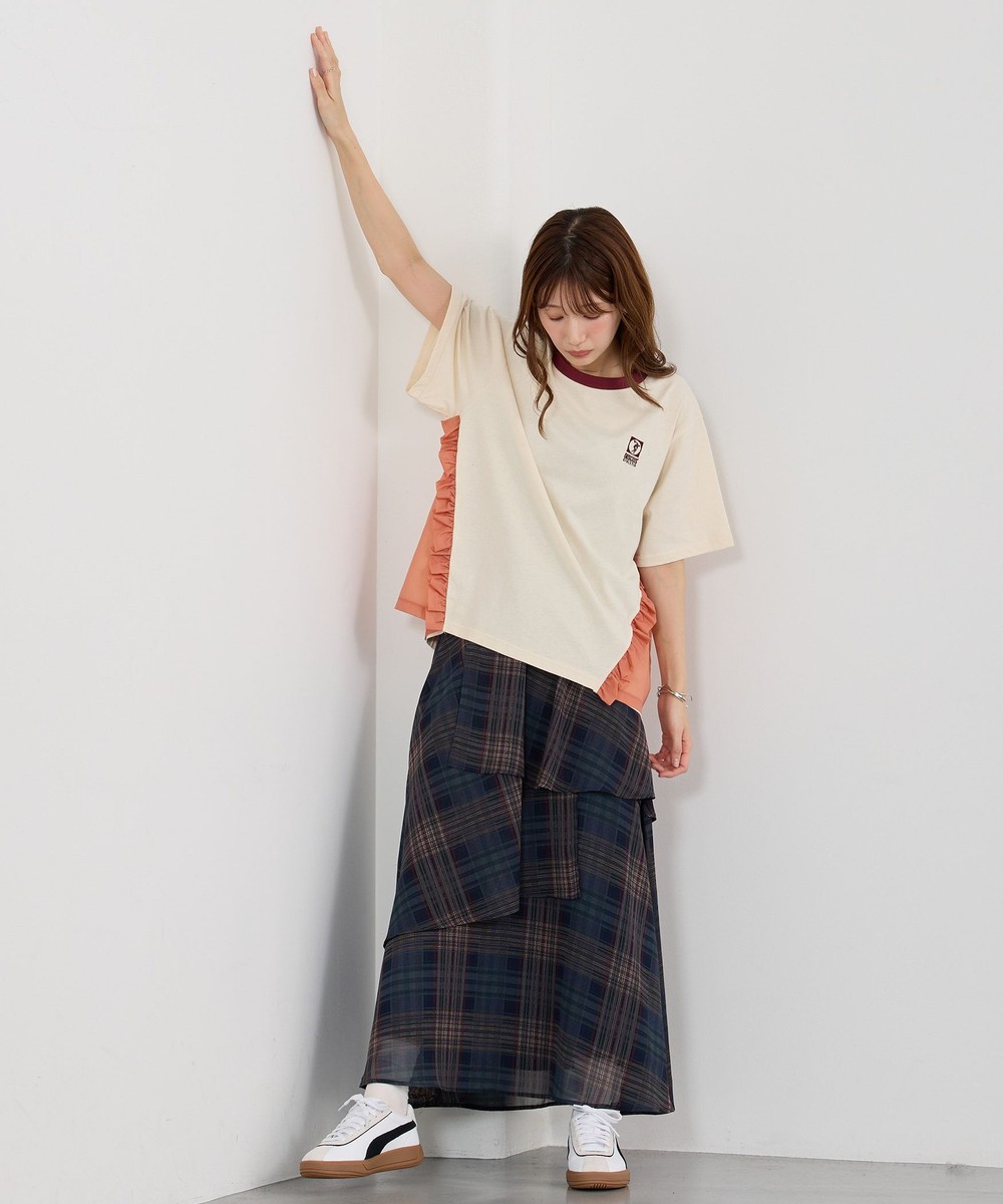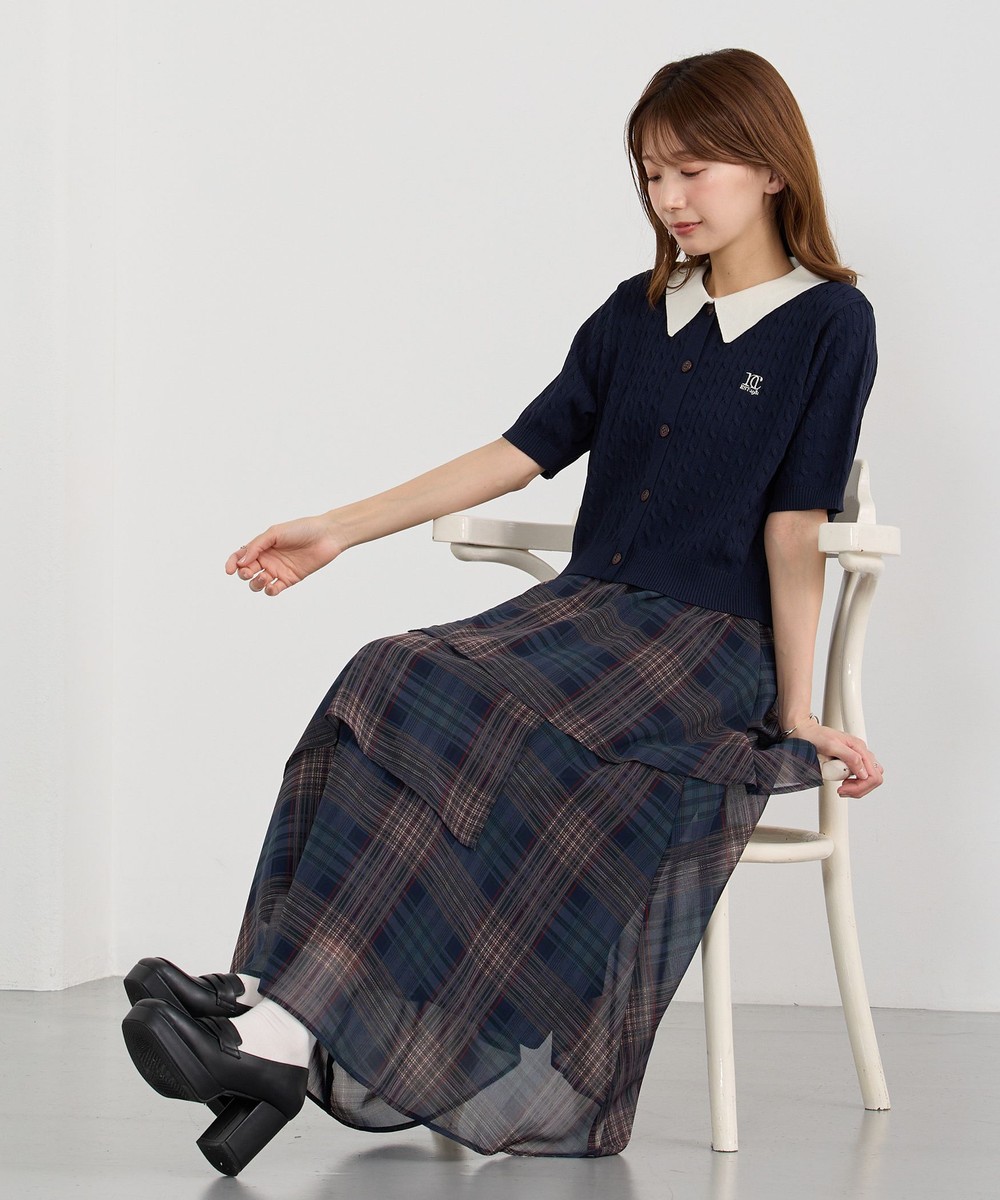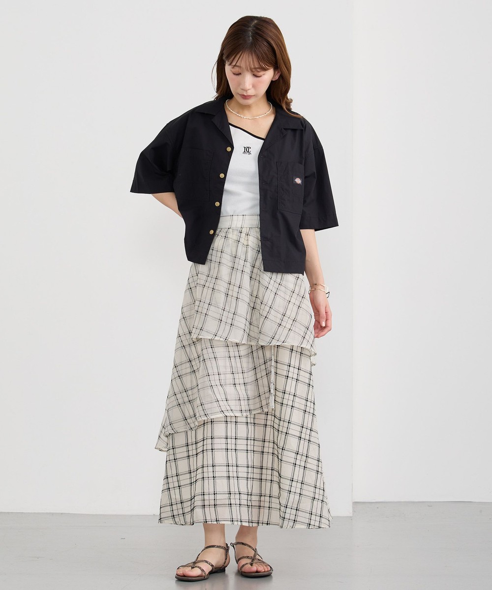 生地をたっぷり使ったレイヤードデザインとチェックが華やかな一枚。