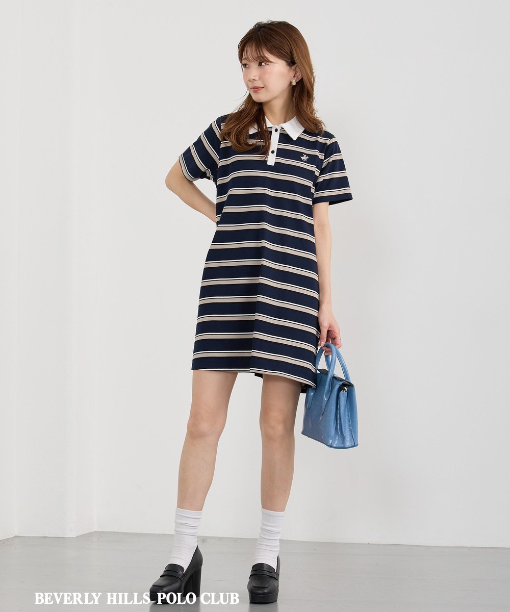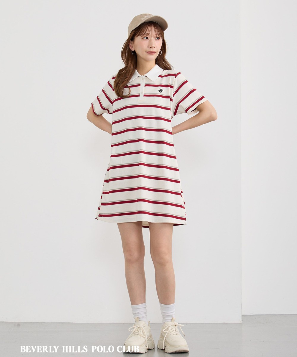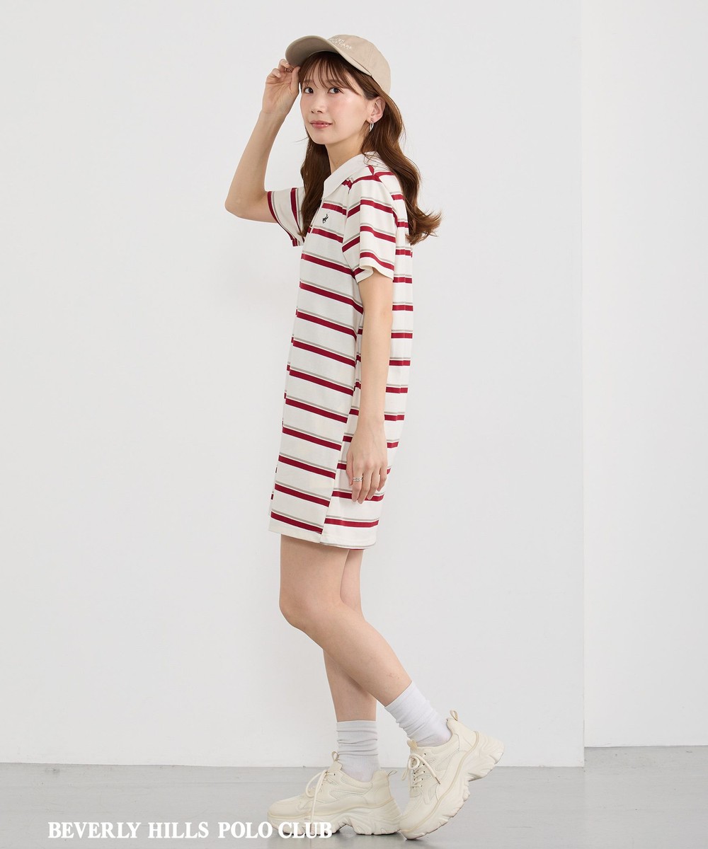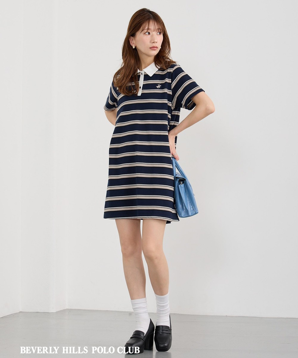 幼くなりがちなボーダー×ポロワンピですがシルエットをIラインに寄せることで大人カジュアルに着こなしていただけるよう仕上げました。